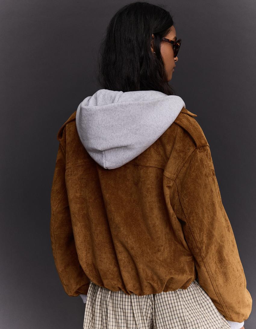 BERSHKA Бомбер из искусственной замши, цвет верблюжьей шерсти