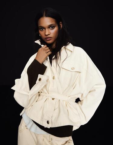 BERSHKA Джинсовая куртка оверсайз, кремовый