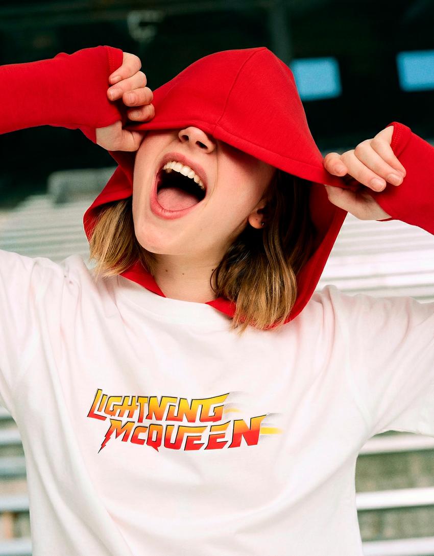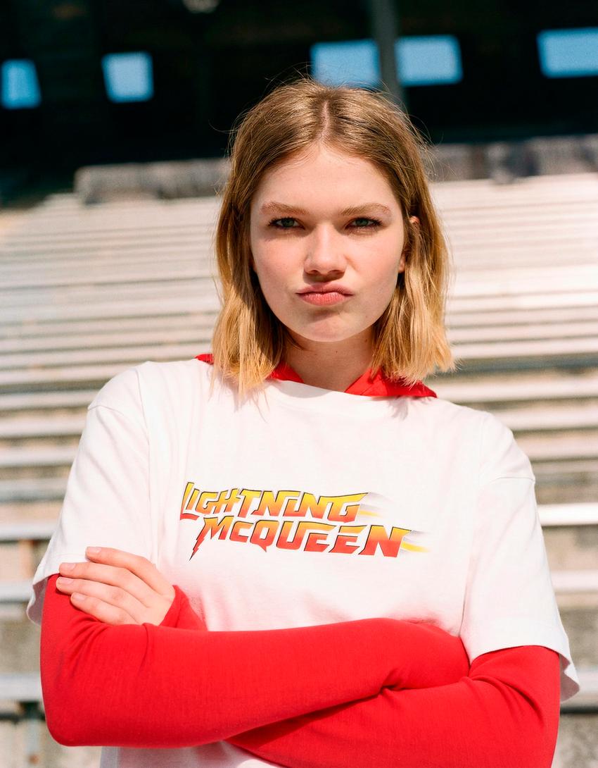 BERSHKA Футболка оверсайз с принтом Cars, белый