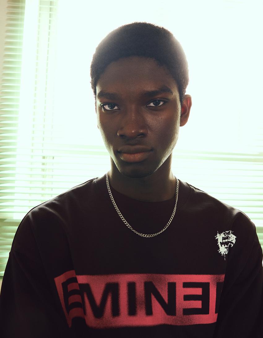 BERSHKA Футболка с длинным рукавом Eminem, черный