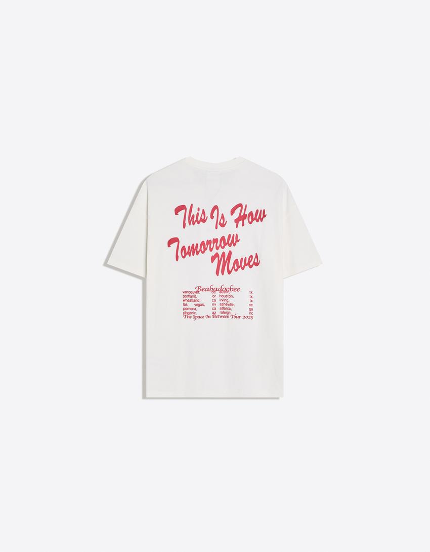 BERSHKA Футболка с коротким рукавом и принтом Beabadoobee, белый