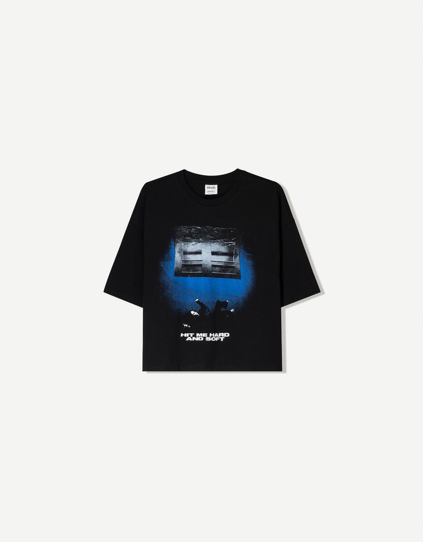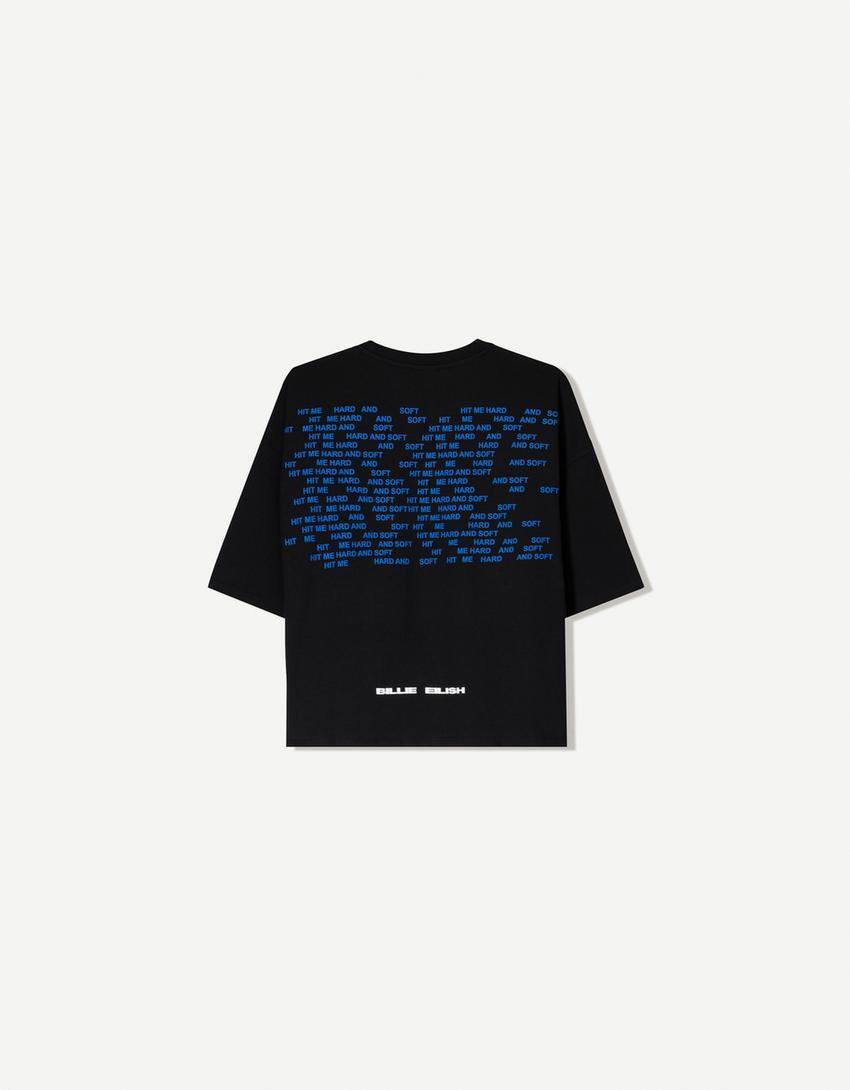 BERSHKA Футболка с коротким рукавом и принтом Billie Eilish, черный