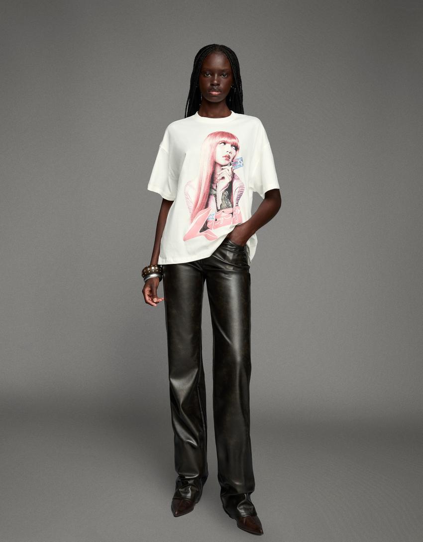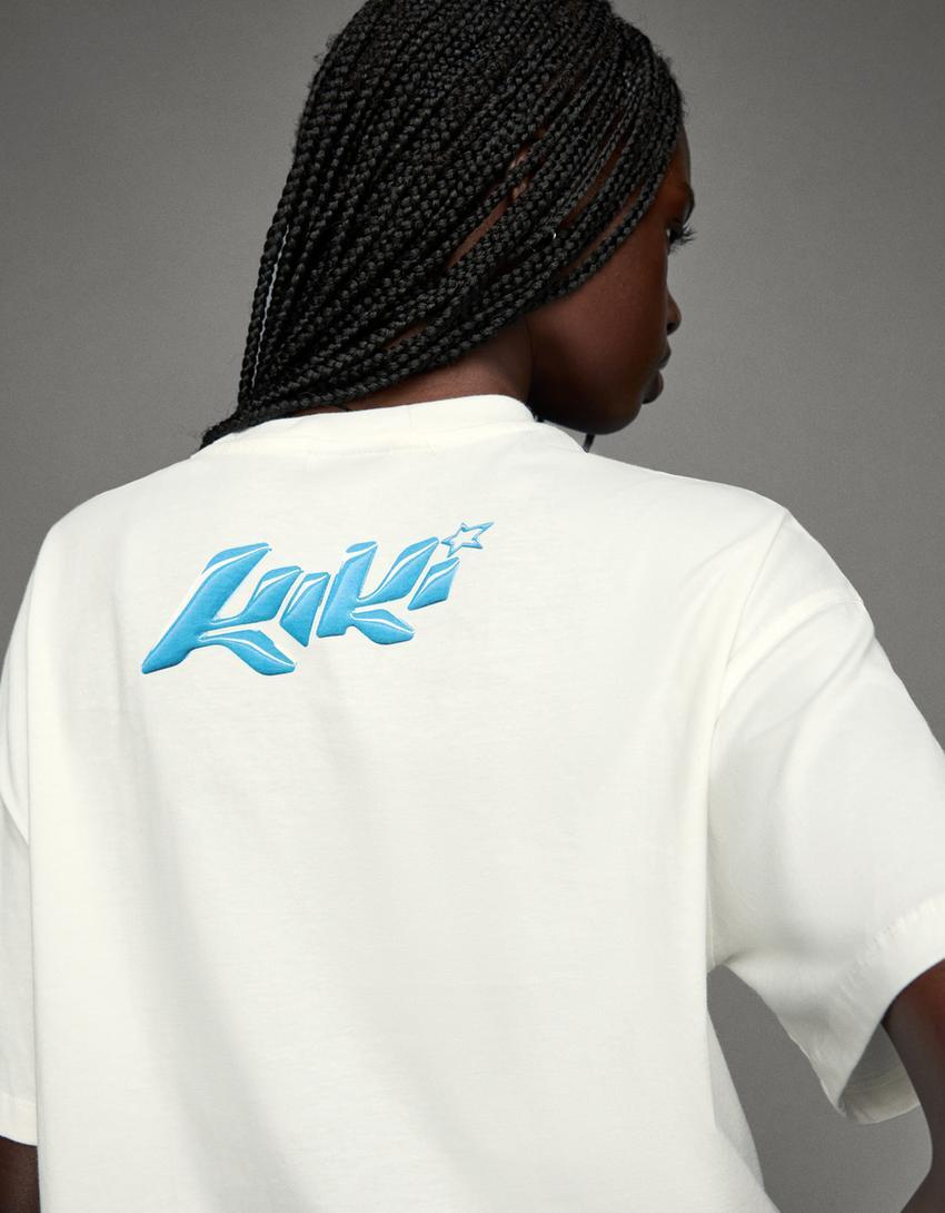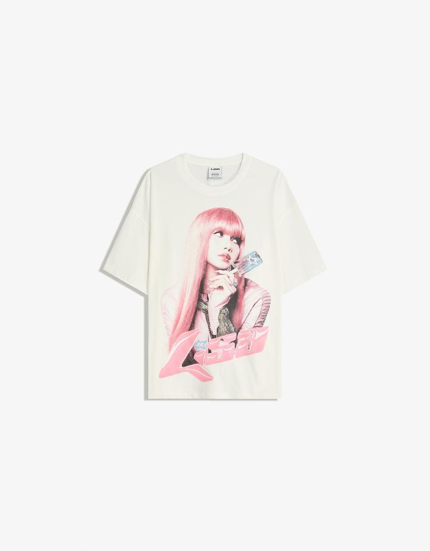 BERSHKA Футболка с коротким рукавом и принтом Lisa, белый