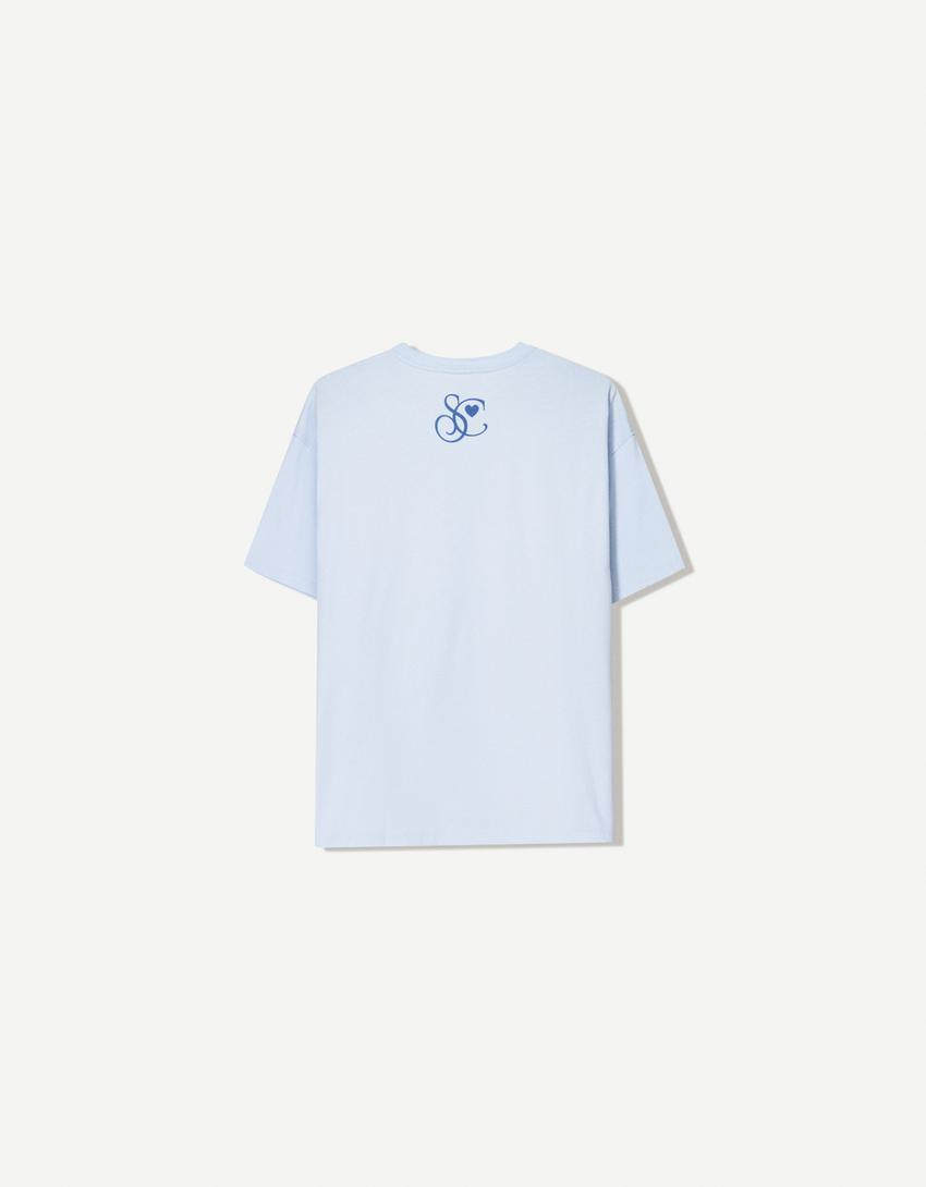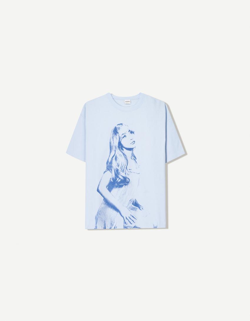 BERSHKA Футболка с коротким рукавом и принтом Sabrina Carpenter, светло-голубой