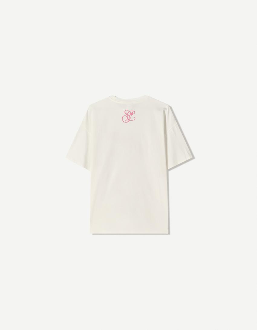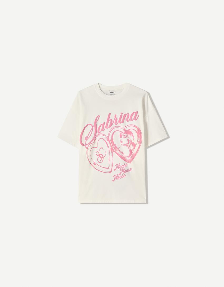 BERSHKA Футболка с коротким рукавом и принтом Sabrina Carpenter, белый
