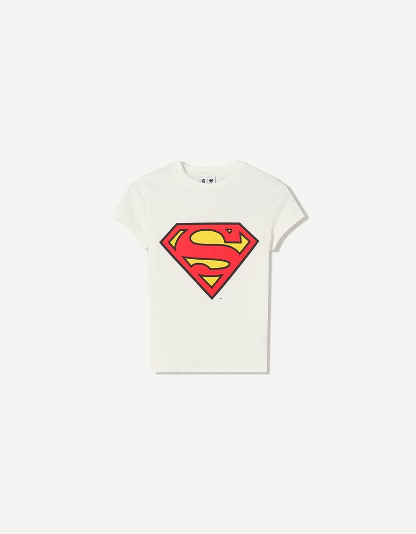 BERSHKA Футболка с коротким рукавом и принтом Superman, белый