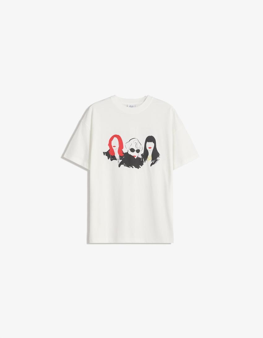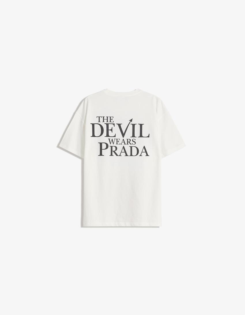 BERSHKA Футболка с коротким рукавом и принтом The Devil Wears Prada, белый