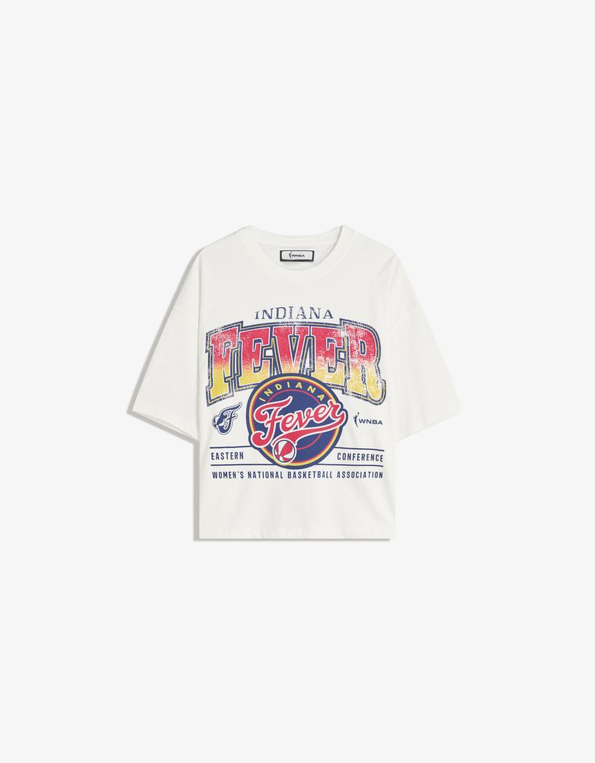 BERSHKA Футболка с коротким рукавом и принтом WNBA, белый