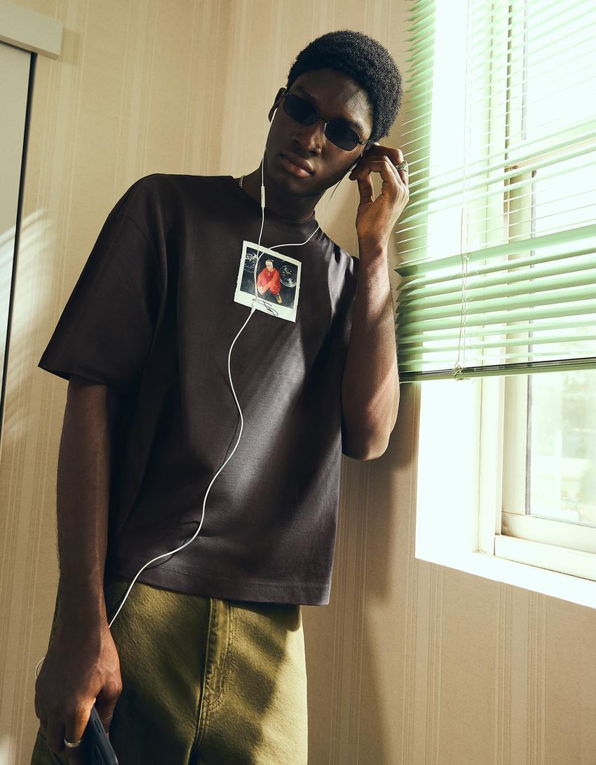 BERSHKA Футболка с коротким рукавом свободного кроя с изображением Eminem, серый