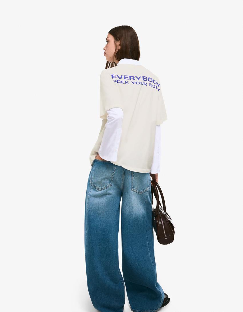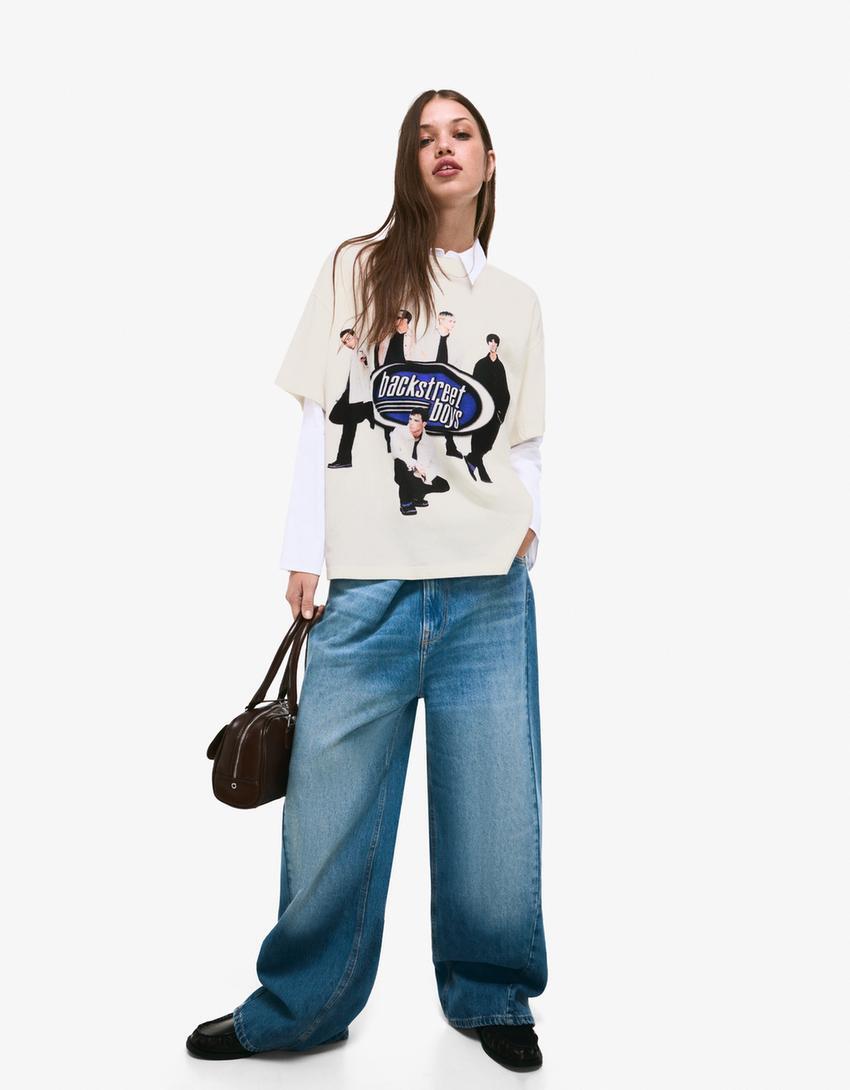 BERSHKA Футболка с короткими рукавами и принтом Backstreet Boys, белый