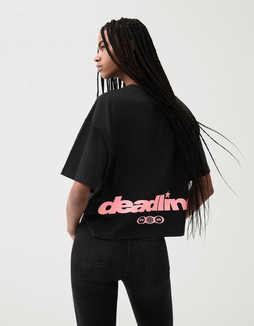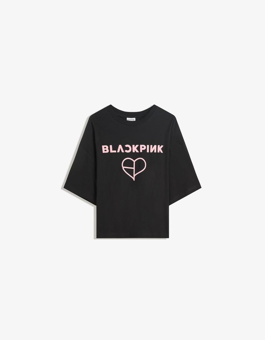 BERSHKA Футболка с короткими рукавами и принтом Blackpink, черный