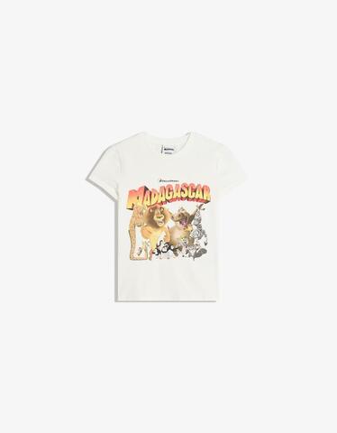BERSHKA Футболка с короткими рукавами и принтом Madagascar, белый