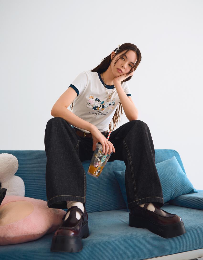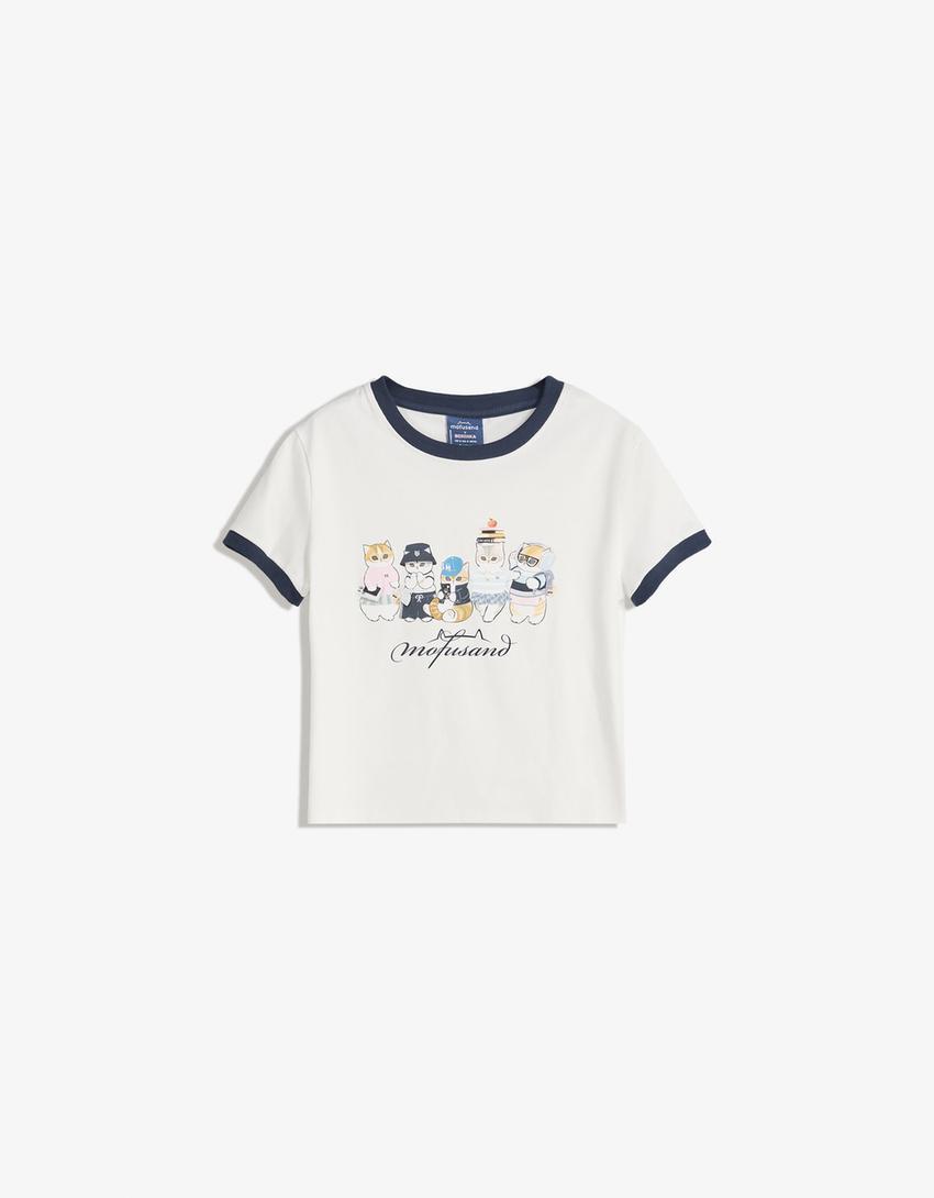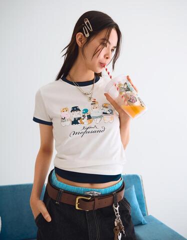 BERSHKA Футболка с короткими рукавами и принтом Mofusand, белый