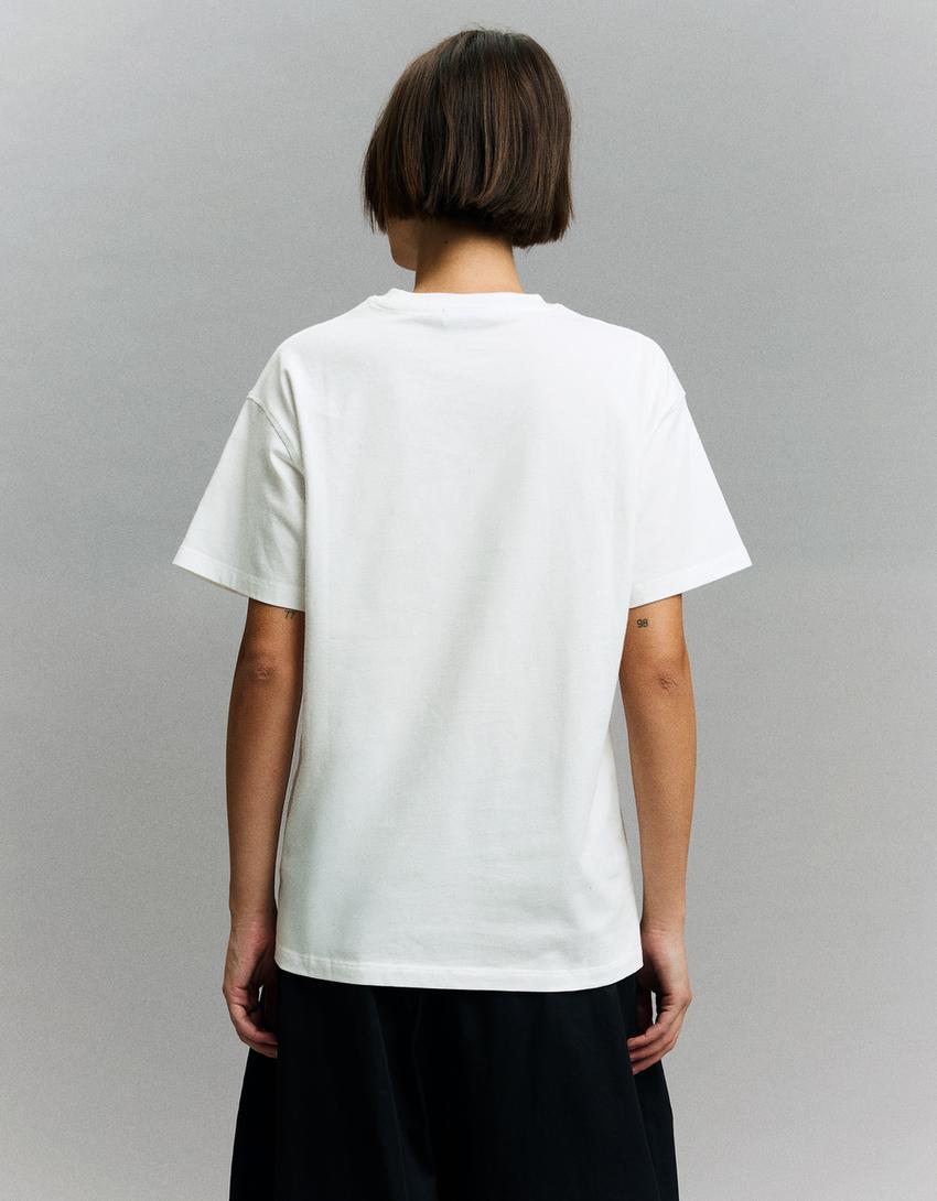 BERSHKA Футболка с короткими рукавами и принтом от Cardi B", белый