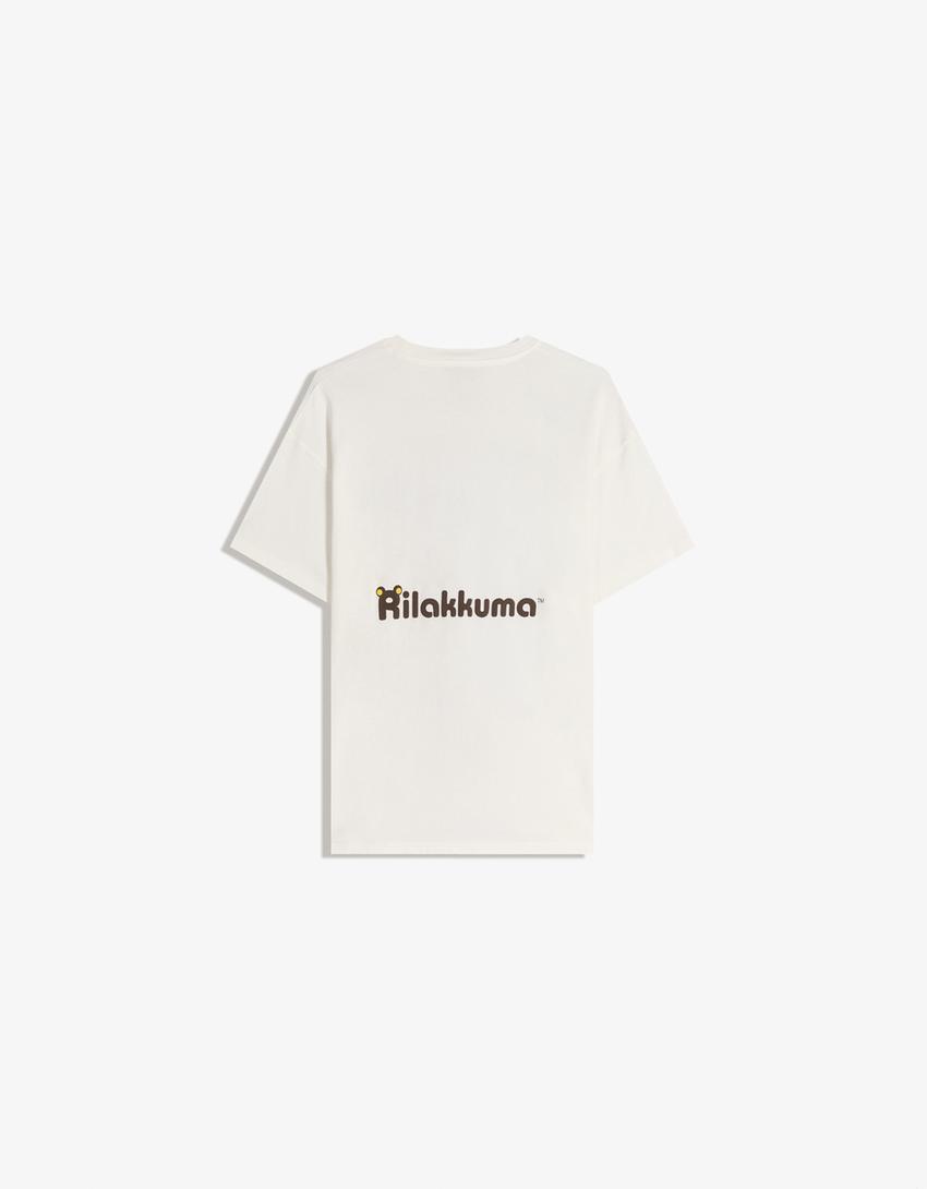 BERSHKA Футболка с короткими рукавами и принтом Rilakkuma, белый