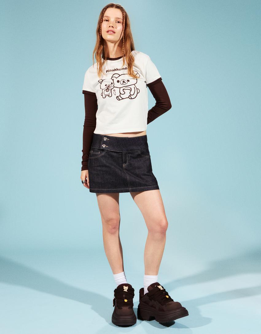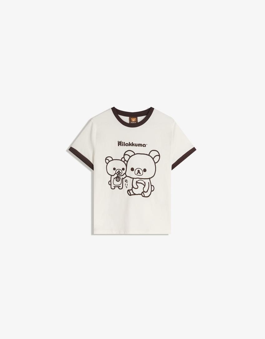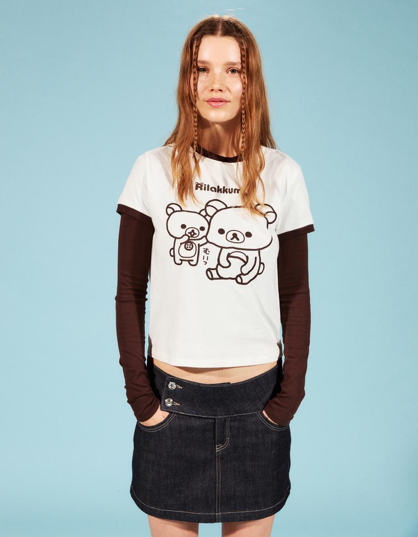 BERSHKA Футболка с короткими рукавами и принтом Rilakkuma, белый