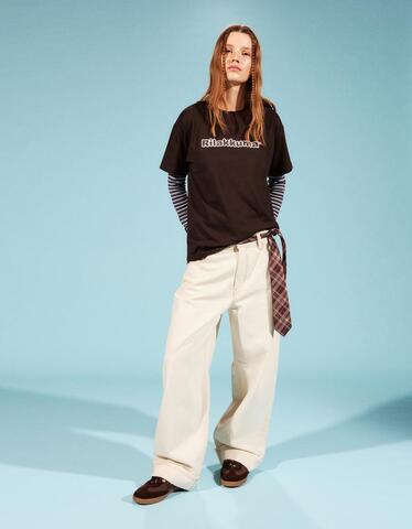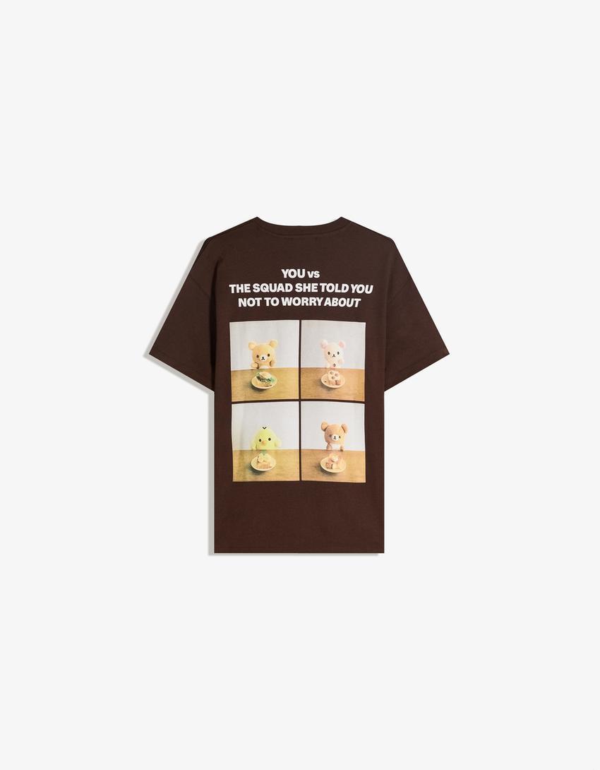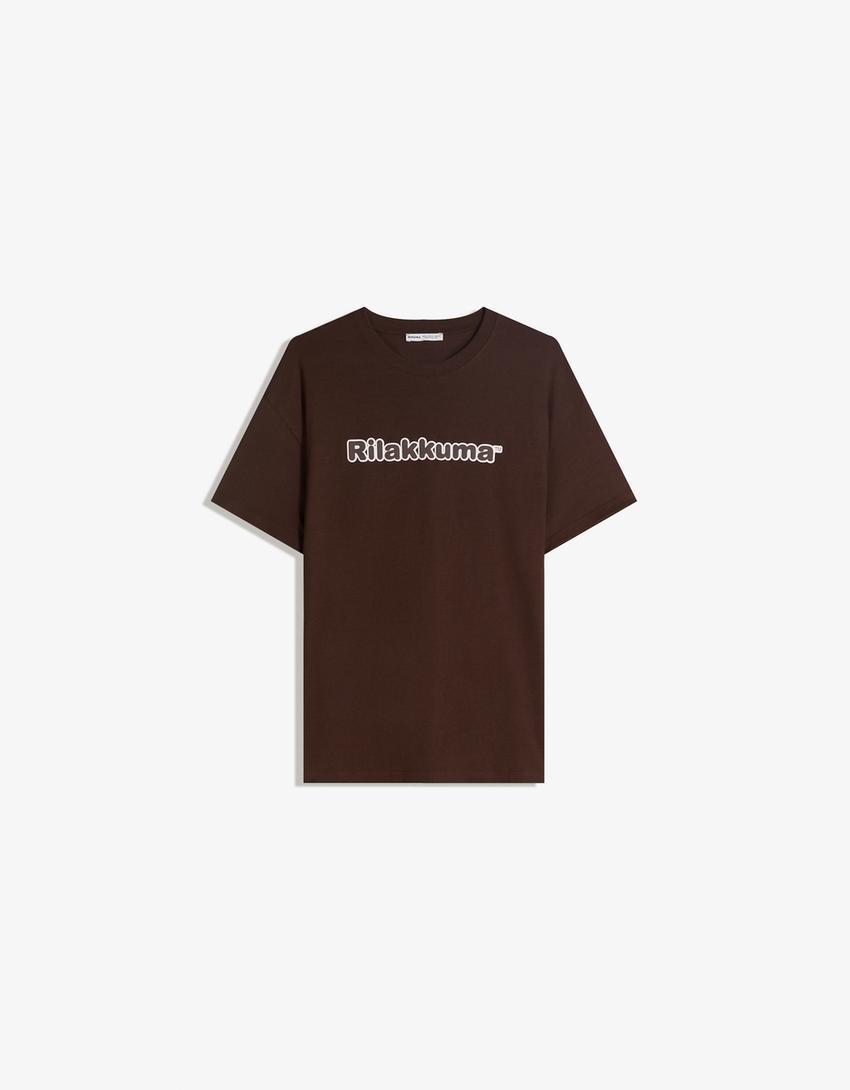 BERSHKA Футболка с короткими рукавами и принтом Rilakkuma, коричневый