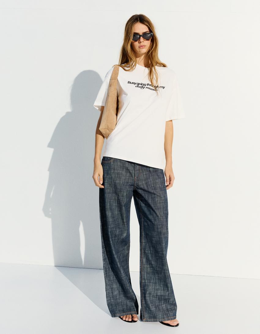 BERSHKA Футболка с принтом Bibble, белый
