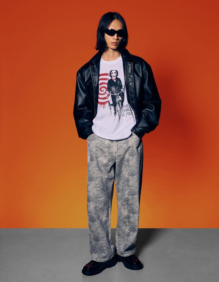 Футболка с короткими рукавами, круглым вырезом и принтом "Пилы".