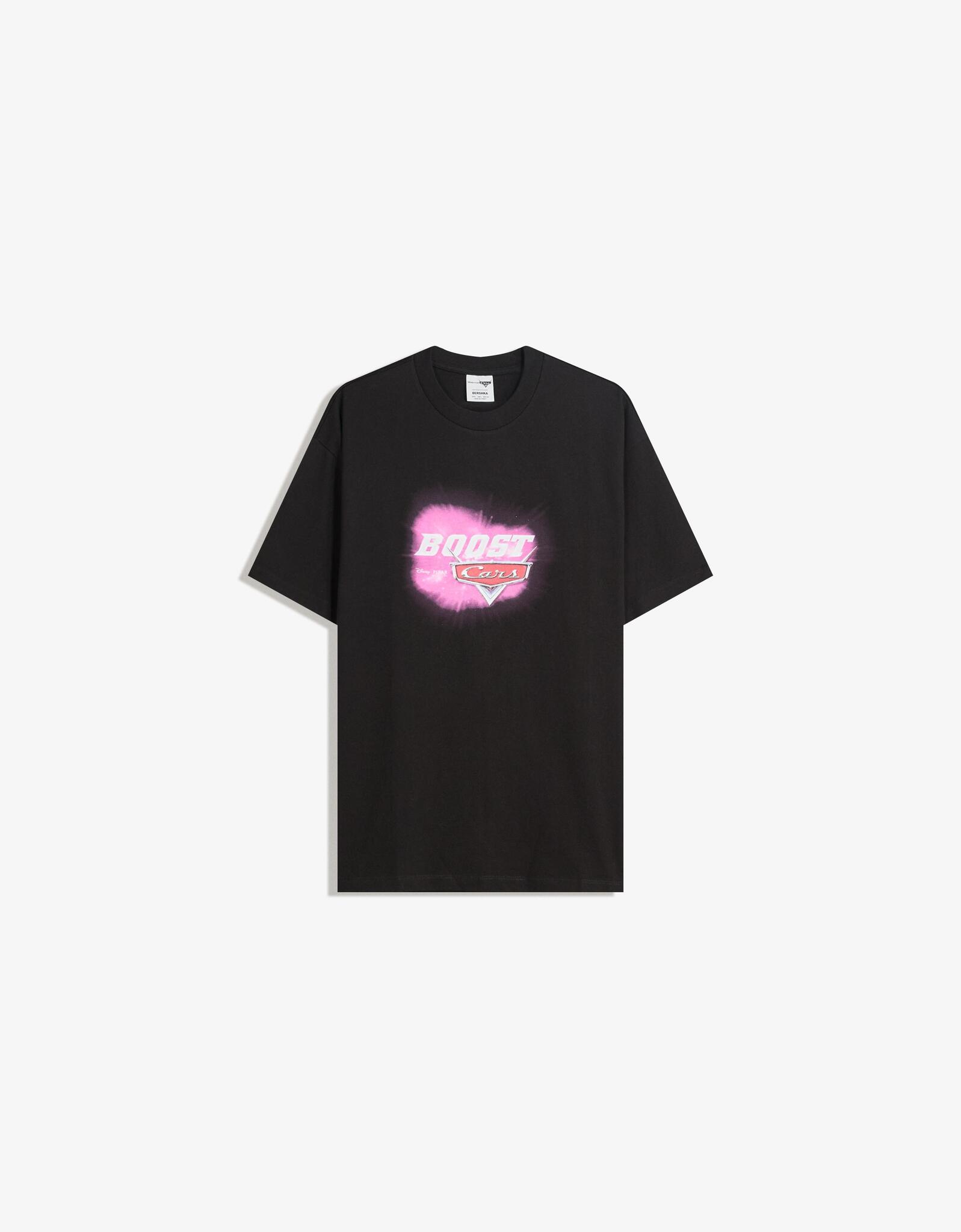 BERSHKA Футболка с принтом Cars, черный