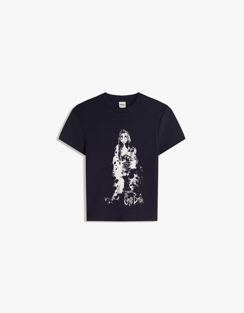 BERSHKA Футболка с принтом Corpse Bride, морской синий