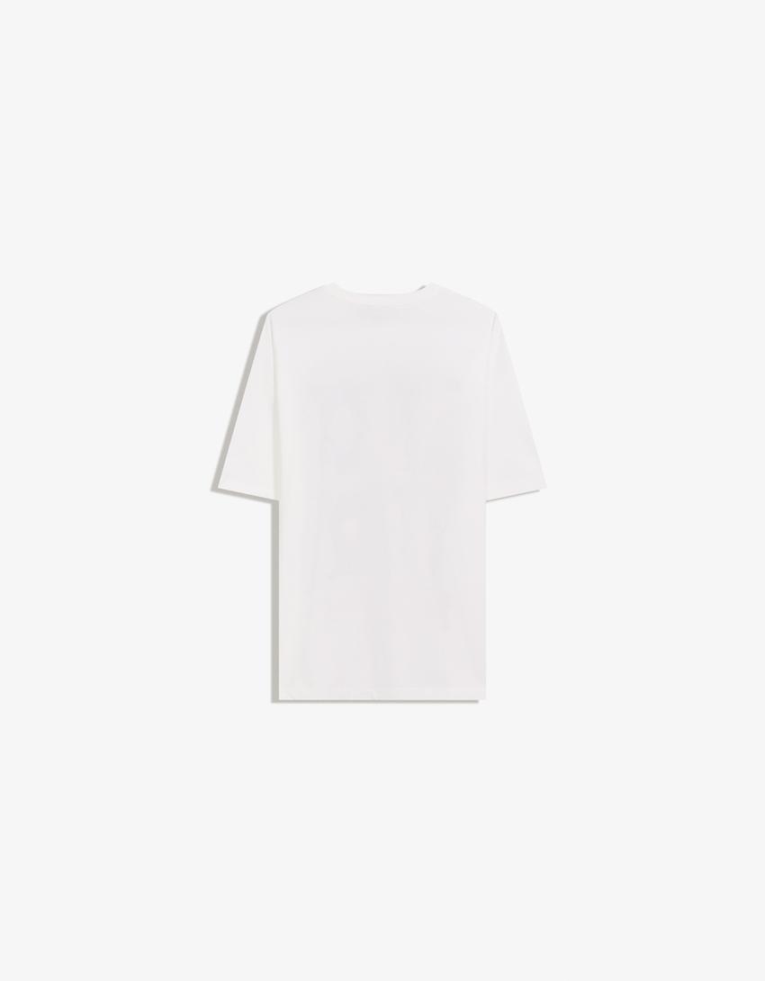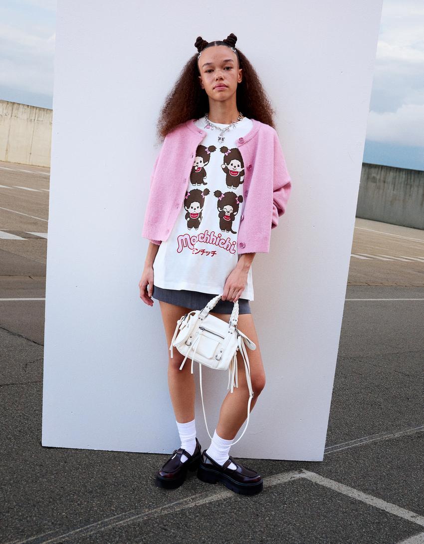 BERSHKA Футболка с принтом Monchhichi, белый