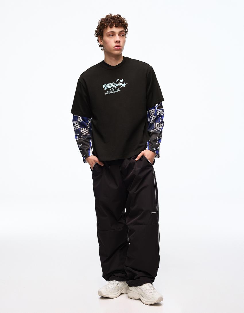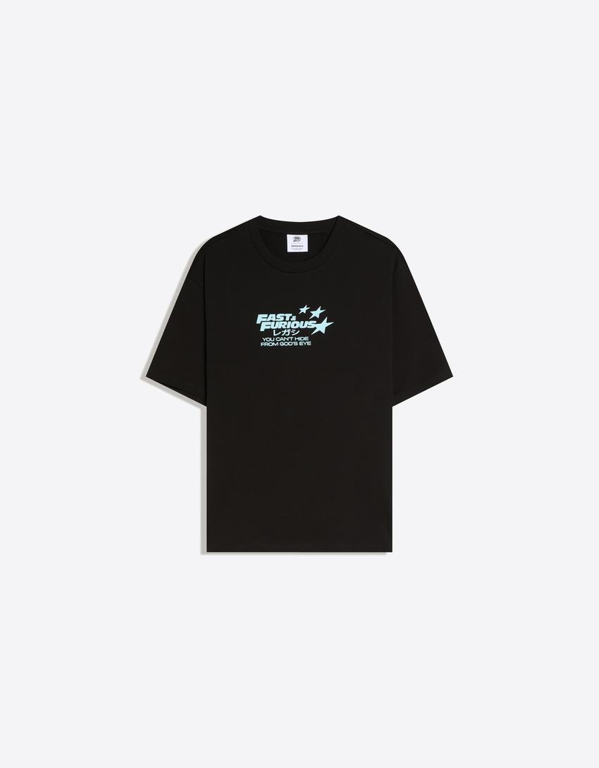 BERSHKA Футболка свободного кроя «Fast & Furious», черный