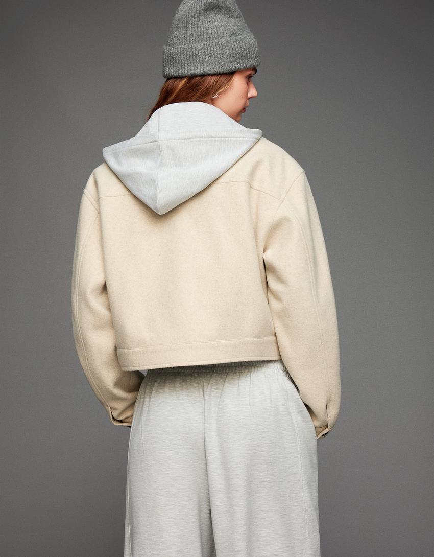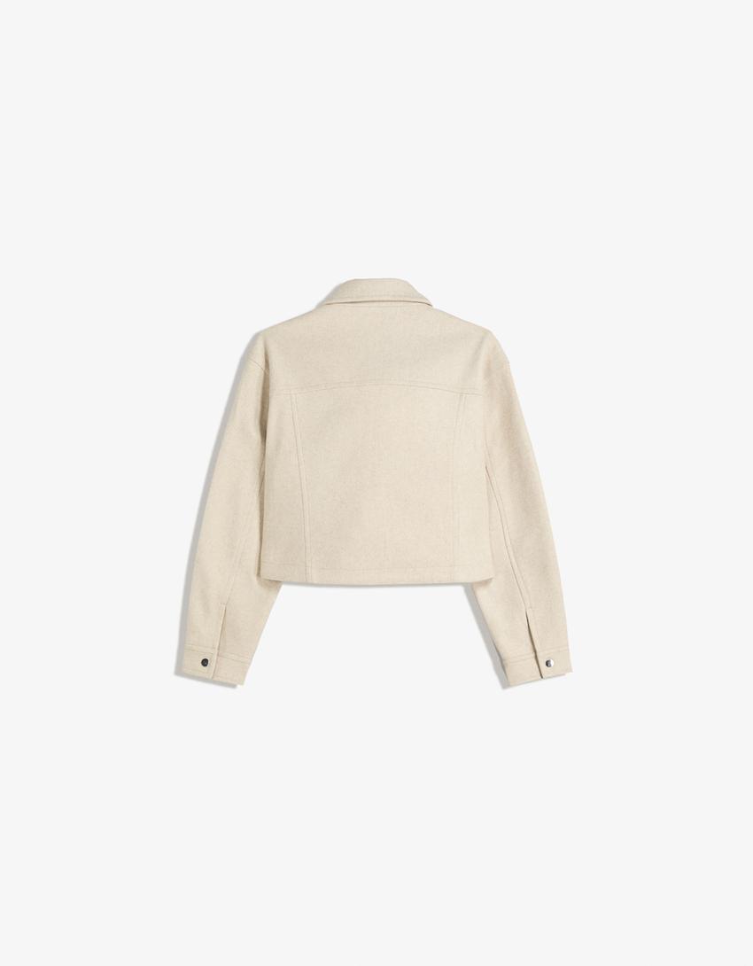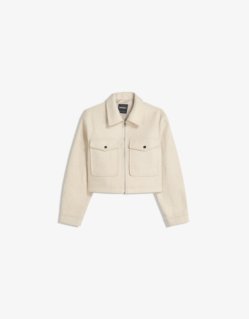 BERSHKA Куртка из мягкой ткани, песочный