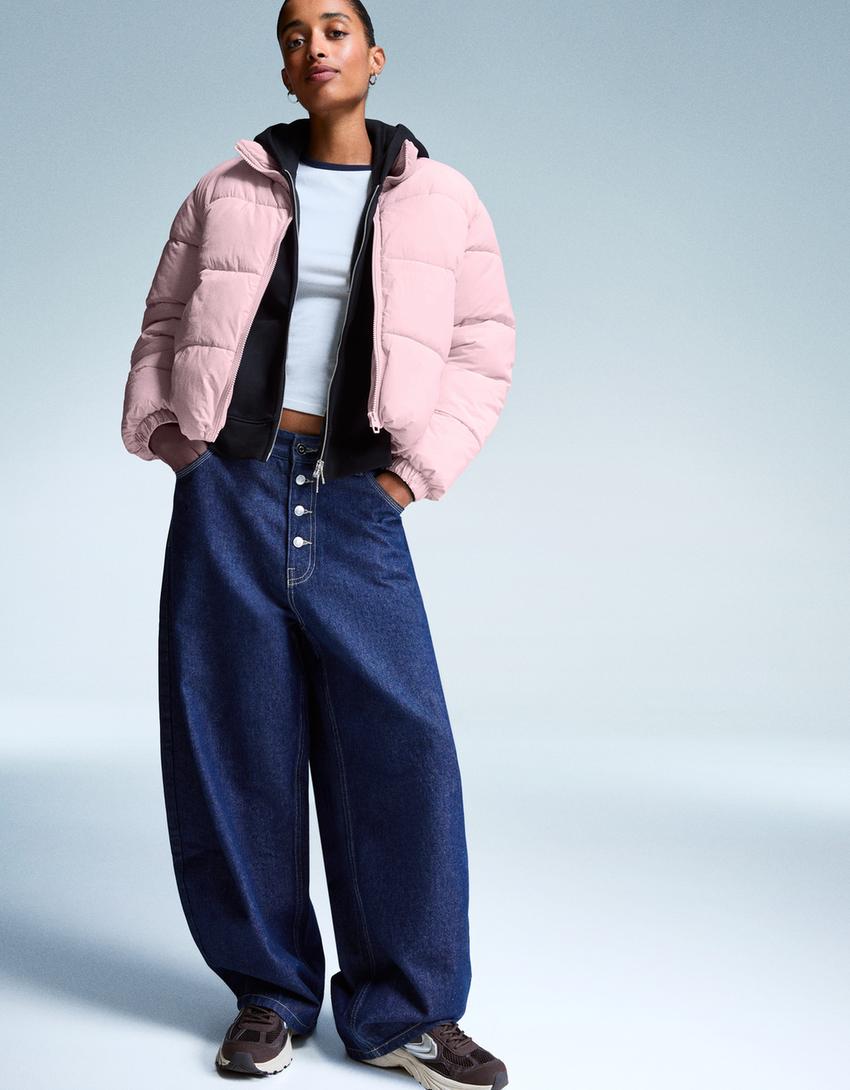 BERSHKA Куртка-пуховик, розовый