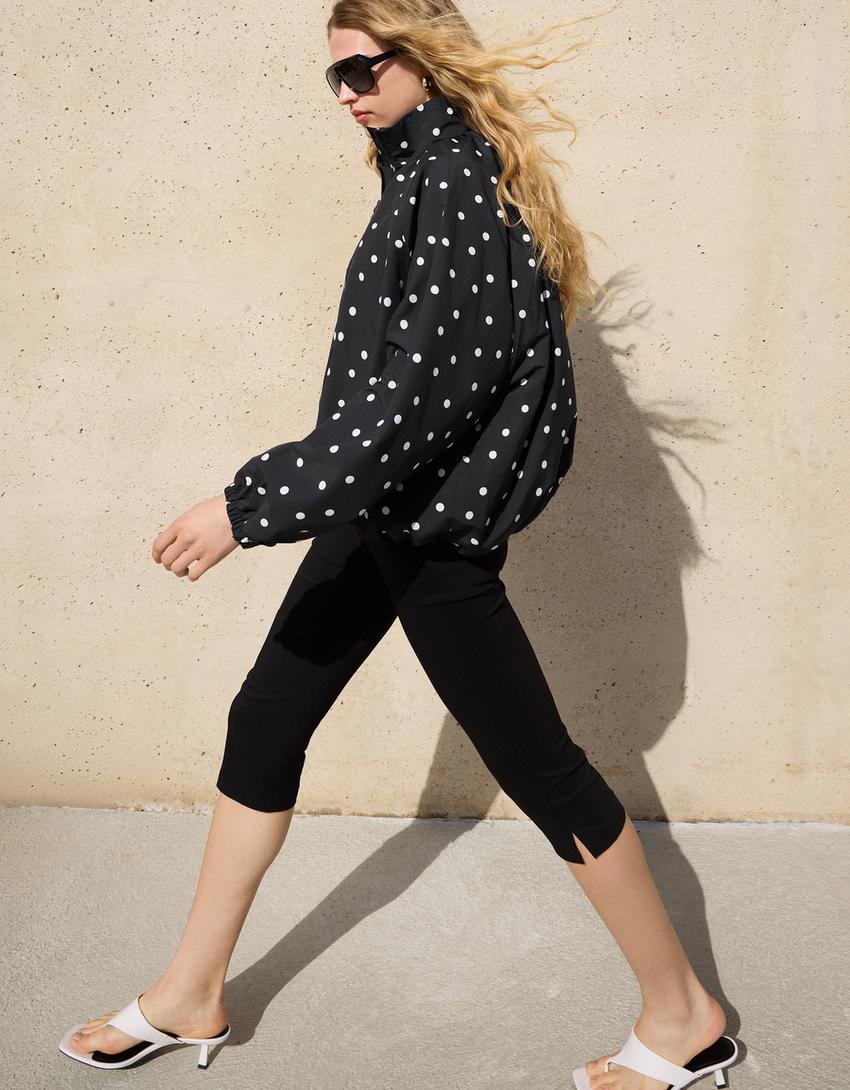BERSHKA Куртка в горошек оверсайз, черный
