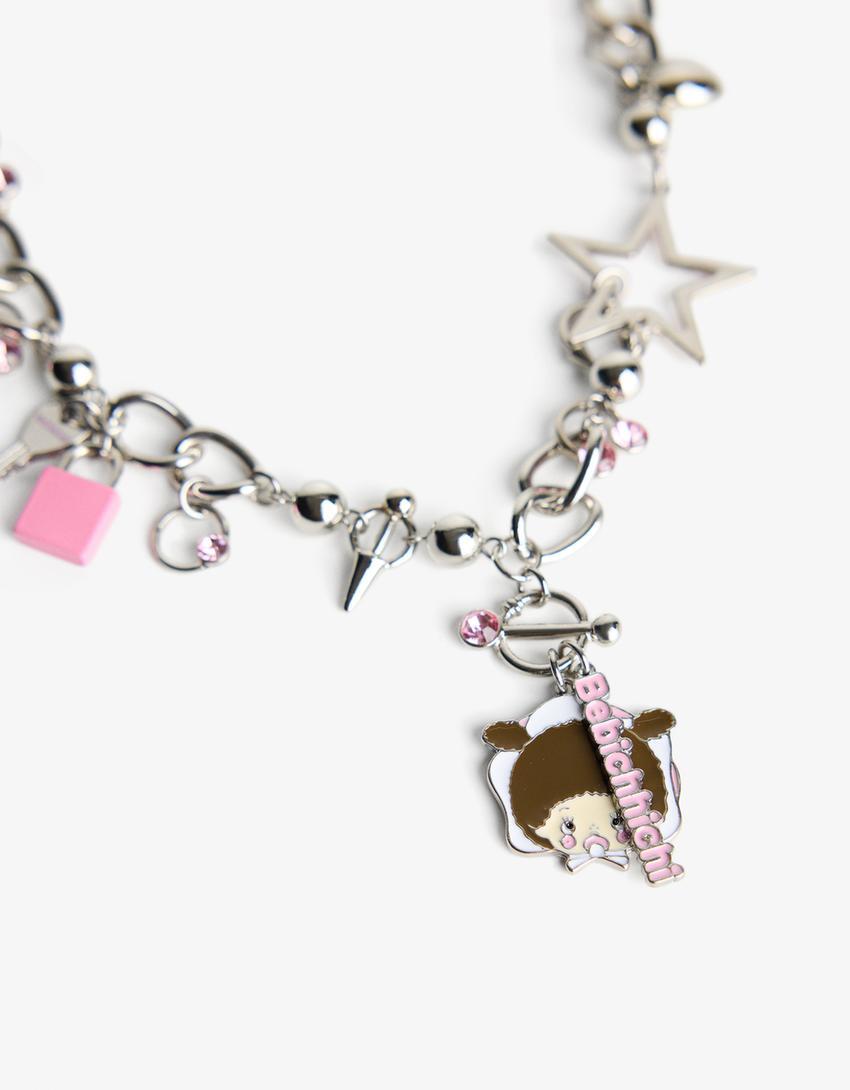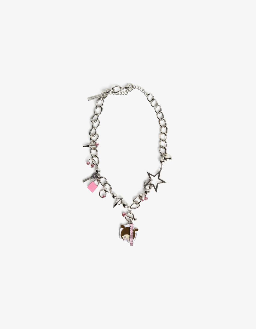 BERSHKA Ожерелье с подвесками Monchhichi, серебряный
