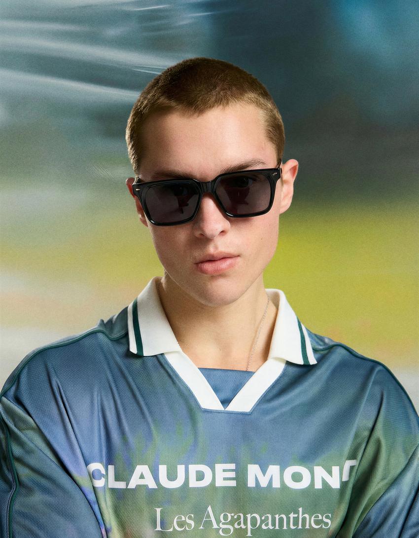 BERSHKA Поло с короткими рукавами Claude Monet, зеленый