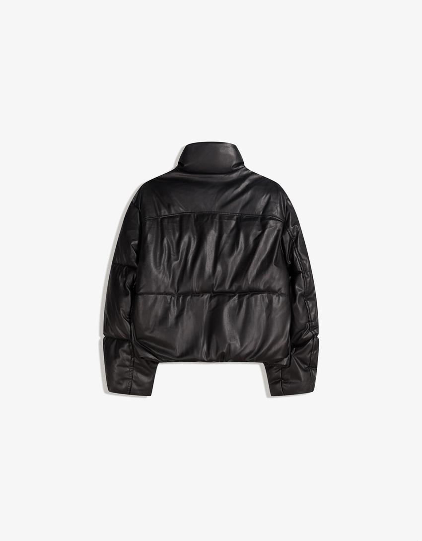 BERSHKA Пуховик из искусственной кожи, черный