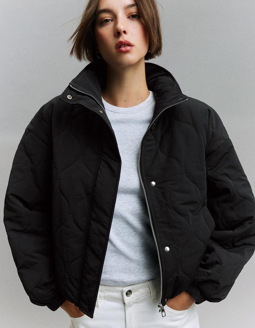 BERSHKA Стеганая куртка, черный