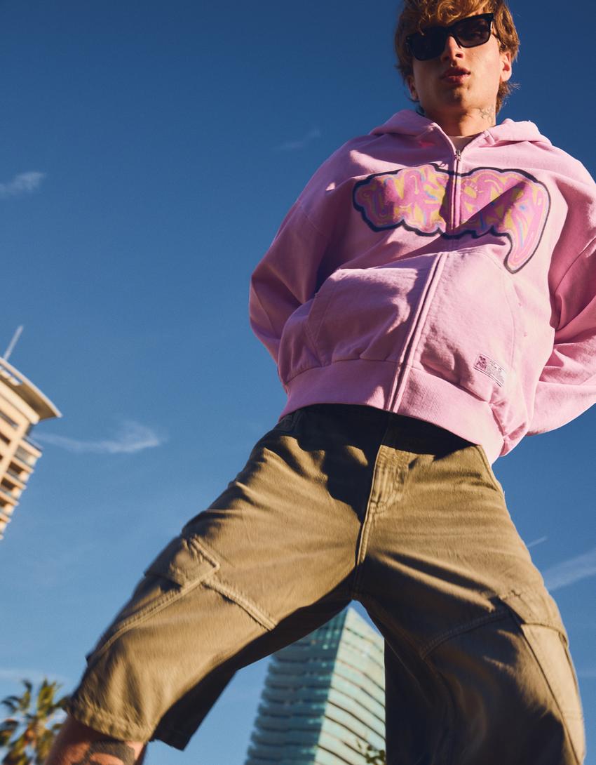 BERSHKA Толстовка на молнии «Tom & Jerry», светло-розовый