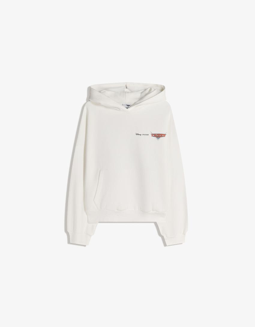 BERSHKA Толстовка с капюшоном и принтом Cars, экрю