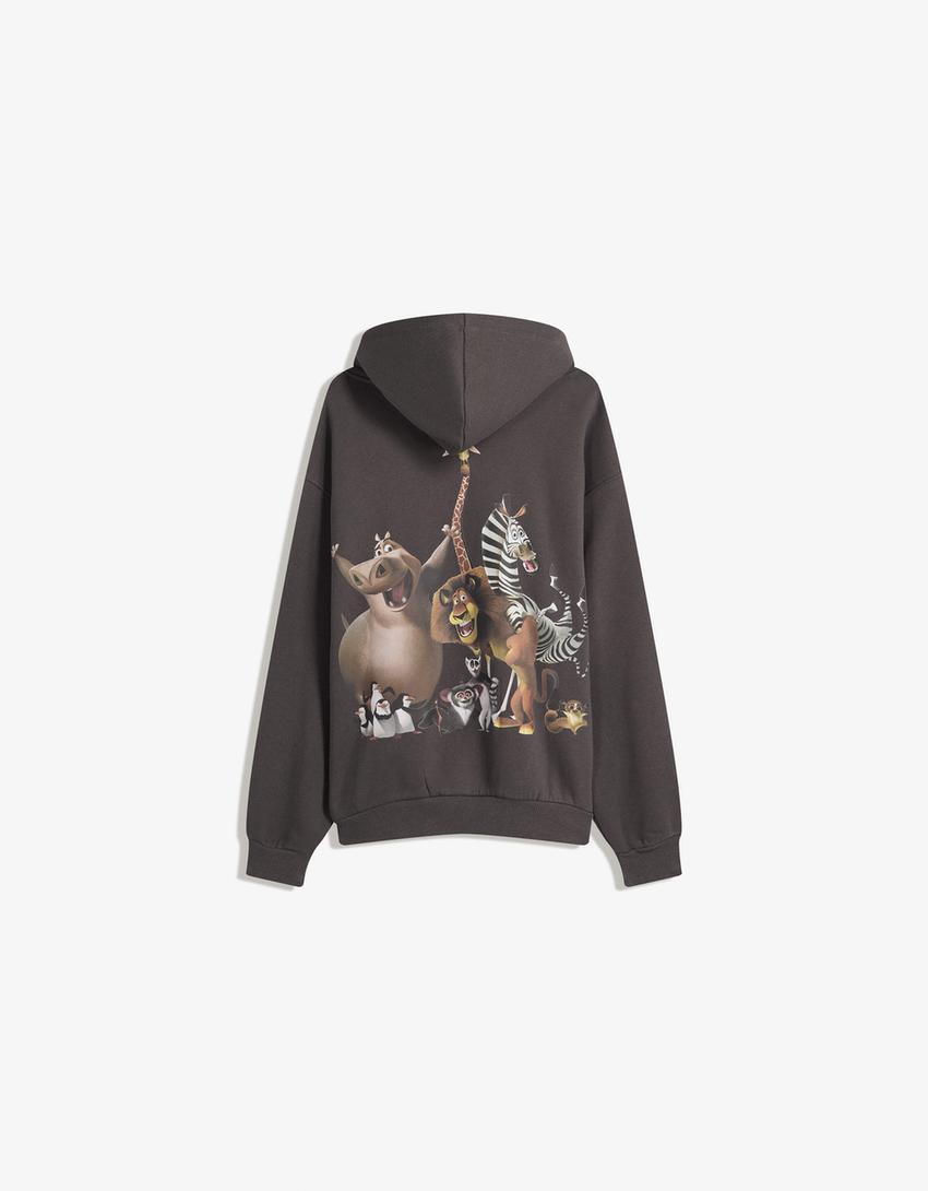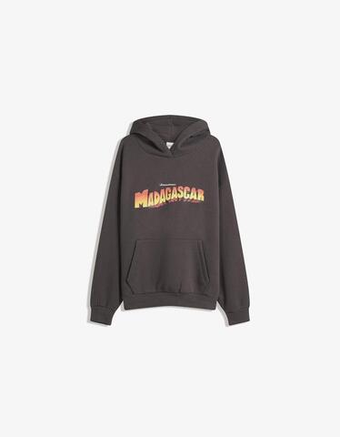 BERSHKA Толстовка с принтом Madagascar, темно-серый