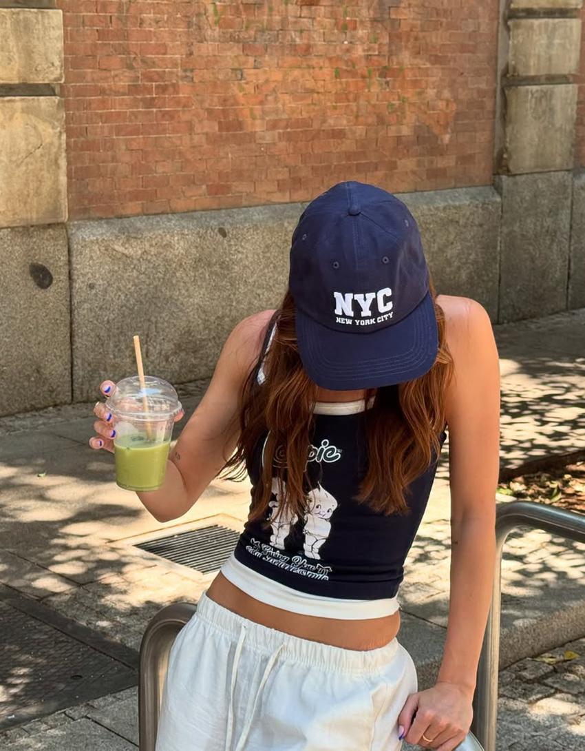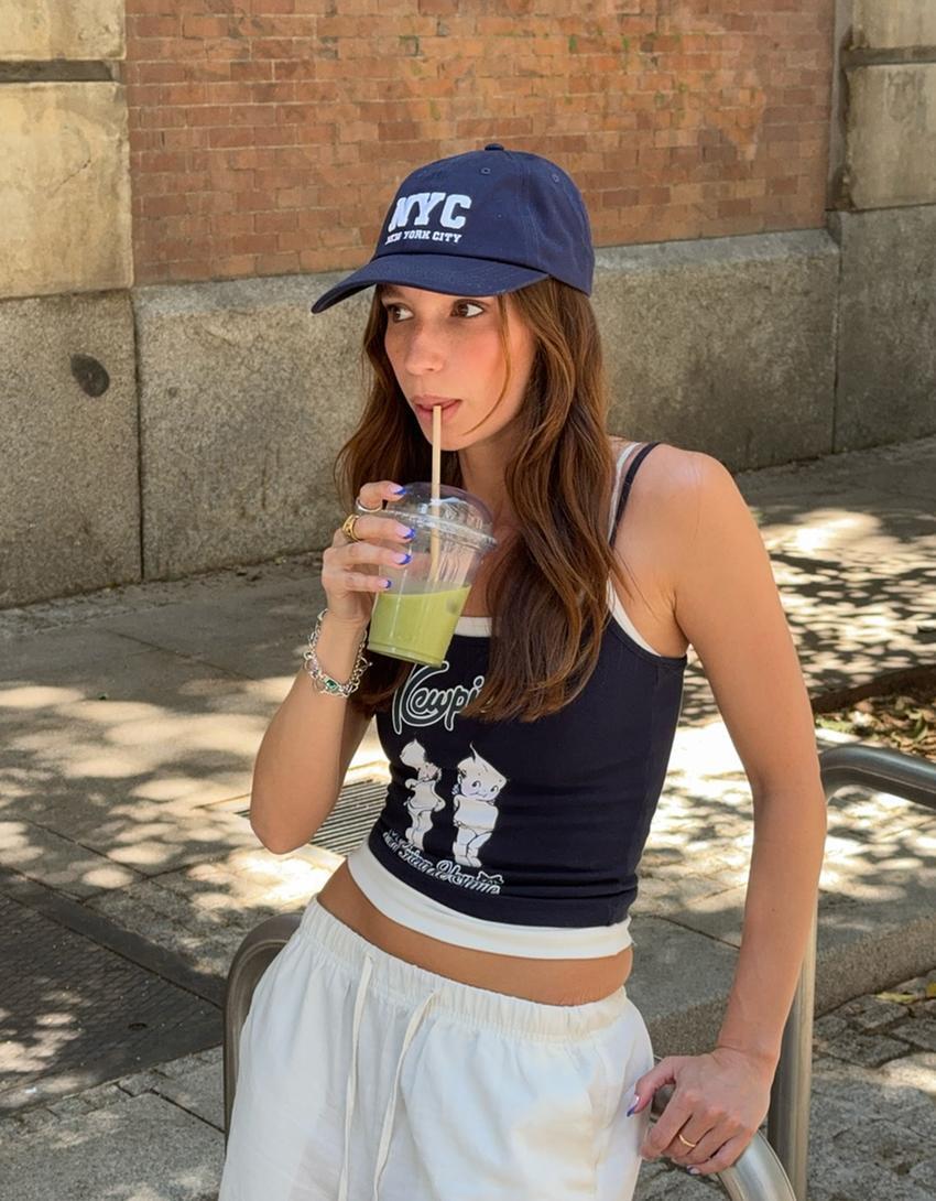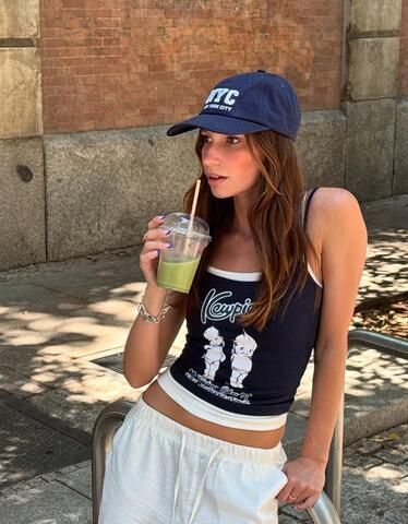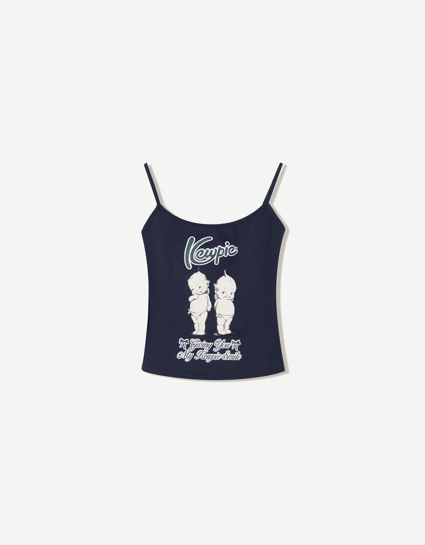 BERSHKA Топ с принтом Kewpie, темно-синий