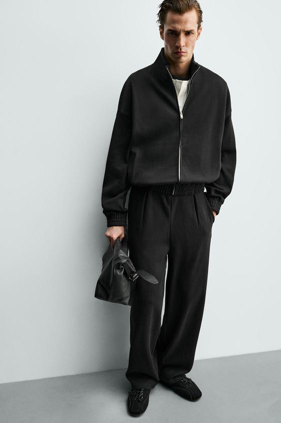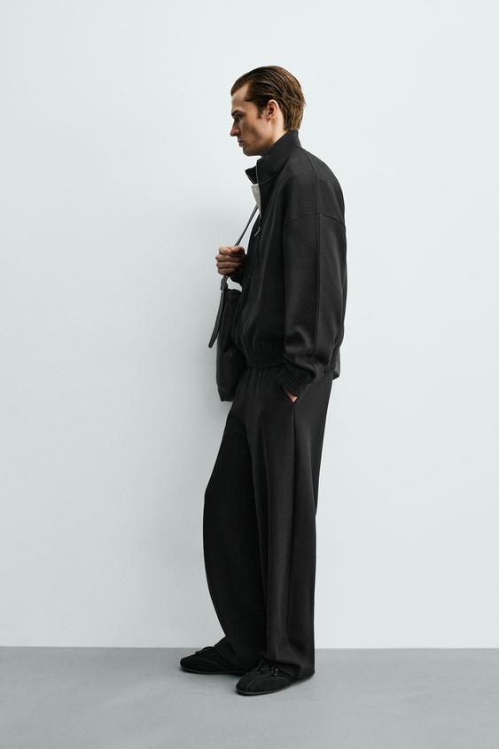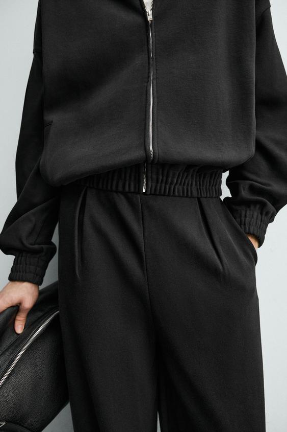 БРЮКИ-ДЖОГГЕРЫ WIDE FIT СО СКЛАДКАМИ, ЧЕРНЫЙ