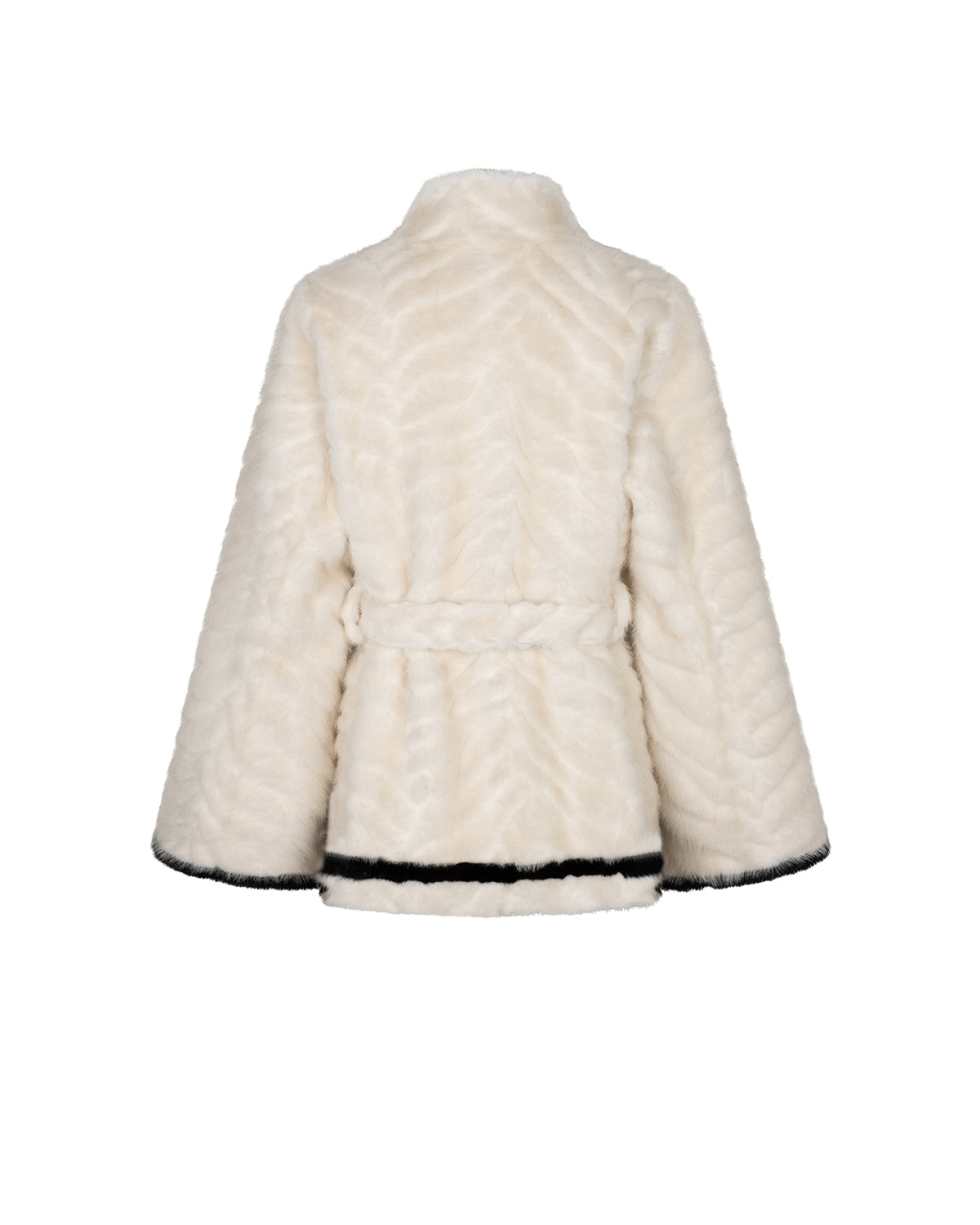 Эта шуба из искусственного меха, входящая в нашу эксклюзивную коллекцию, выпущена ограниченным тиражом по всему миру. Изготовленная из ультрамягкого искусственного меха премиум-класса с волнообразной текстурой, она дополнена контрастной черной отделкой и съемным поясом, подчеркивающим талию.