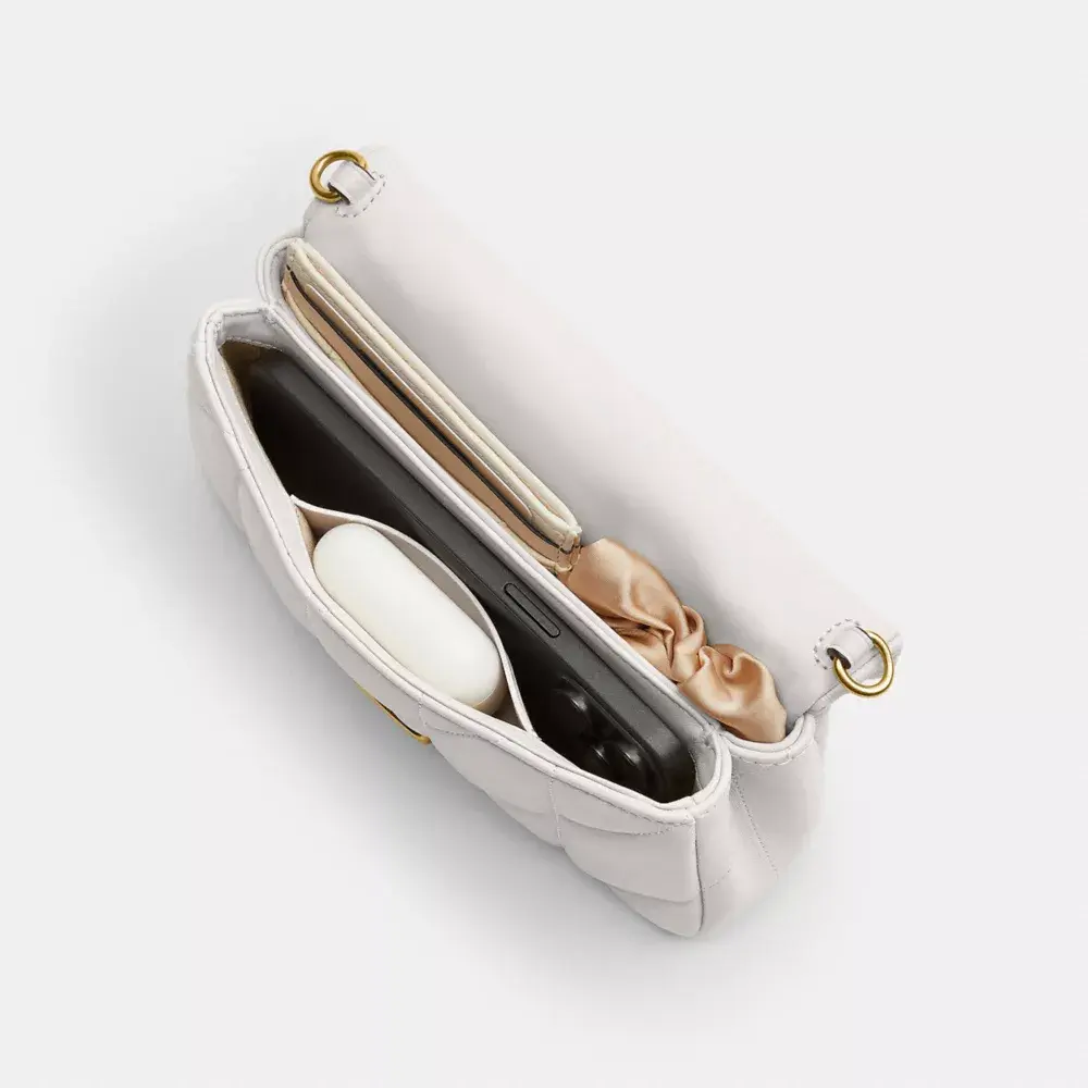 COACH СУМКА ЧЕРЕЗ ПЛЕЧО TABBY 19 С ЦЕПОЧКОЙ И СТЕЖКОЙ, БЕЛЫЙ