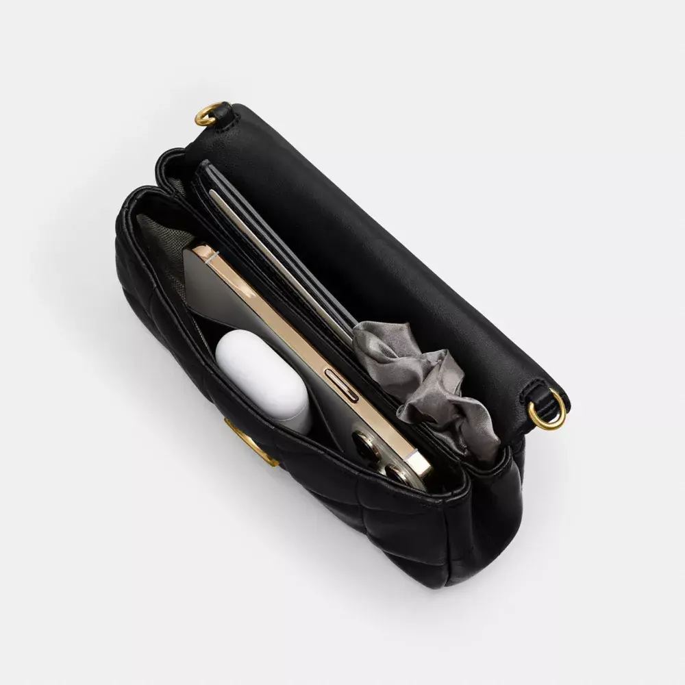 COACH СУМКА ЧЕРЕЗ ПЛЕЧО TABBY 19 С ЦЕПОЧКОЙ И СТЕЖКОЙ, ЧЕРНЫЙ