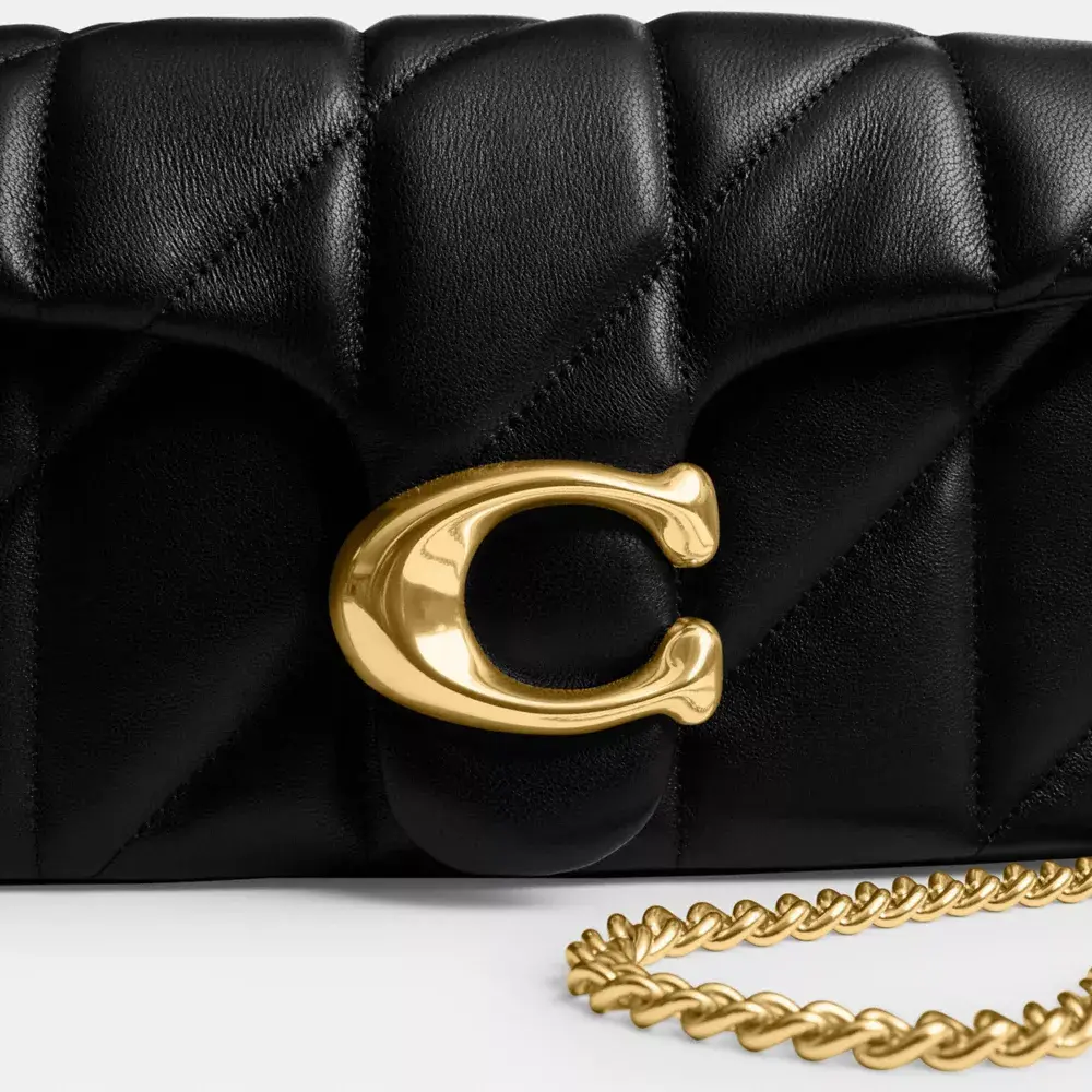 Структурированная сумка через плечо Tabby 19 с ремешком-цепочкой, современная интерпретация дизайна Coach 70-х годов, выполнена из стеганой кожи наппа. Эта двухсекционная модель, дополненная нашей фирменной фурнитурой, идеально подходит для карт, наличных и телефона. Удобный внешний накладной карман обеспечивает легкий доступ к необходимым вещам. Эту универсальную сумку на запястье можно носить как сумочку или через плечо благодаря стильному ремешку-цепочке, что делает ее идеальным выбором как для элегантного, так и для повседневного образа.