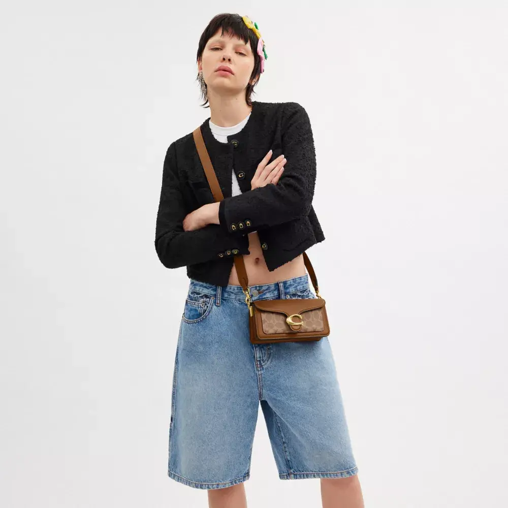 Структурированная сумка через плечо Tabby, представляющая собой современную интерпретацию дизайна Coach 1970-х годов, изготовлена из фирменного холста и высококачественной кожи. Модель Little 20 меньше модели 26, но оснащена двумя съёмными ремнями для ношения в руке, на плече или через плечо. Сумка дополнена нашей фирменной фурнитурой, придающей ей неповторимый вид.