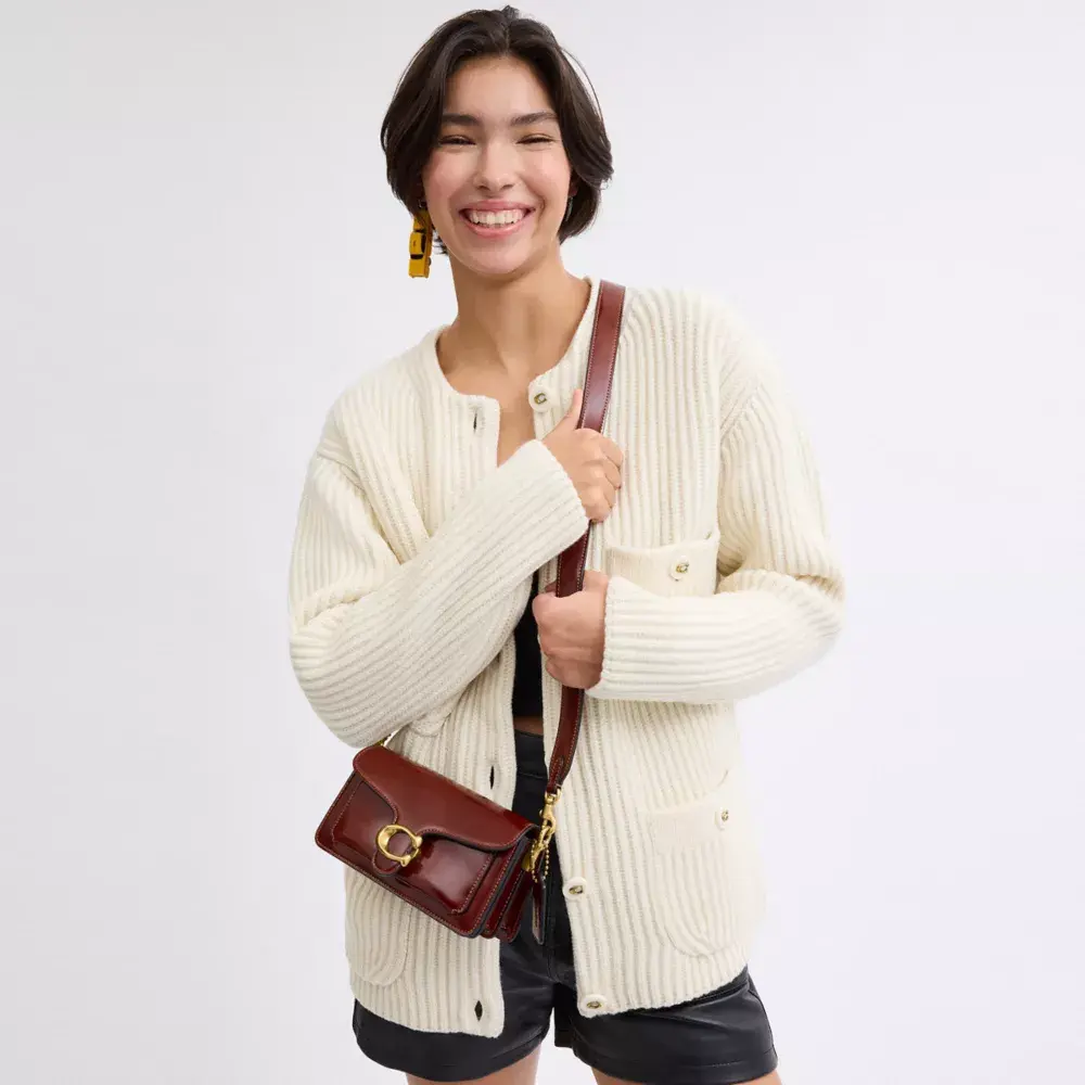 Сумка через плечо Tabby, современная интерпретация дизайна Coach 1970-х годов, выполнена из блестящей мягкой кожи. Модель mini 20 меньше модели 26 и оснащена двумя съёмными ремнями для ношения в руке, на плече или через плечо. Сумка дополнена нашей фирменной фурнитурой, придающей ей неповторимый вид.
