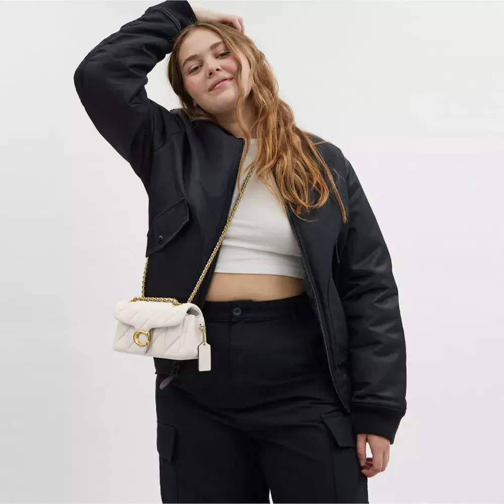 Структурированная сумка через плечо Tabby из стеганой, невероятно мягкой кожи наппа — это современная интерпретация дизайна Coach 1970-х годов. Модель Petite 20, немного меньше модели 26, оснащена длинным кожаным ремешком на цепочке, что позволяет носить её через плечо или как стильный аксессуар для более короткого и элегантного образа. Сумка дополнена нашей фирменной фурнитурой, придающей ей уникальный штрих.