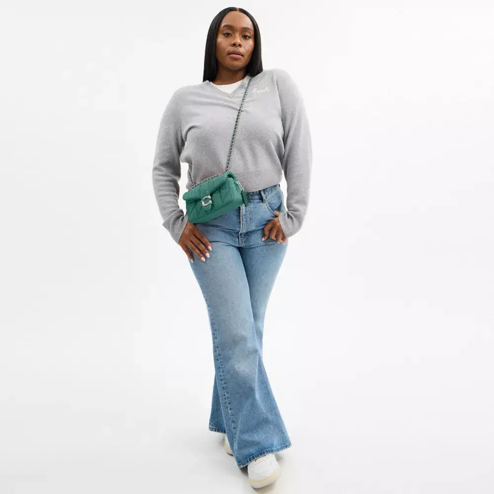 Наша структурированная сумка через плечо Tabby, современная интерпретация архивного дизайна Coach 1970-х годов, выполнена из стеганого денима со свободным кроем, окрашенным в готовом виде, что создает ощущение мягкости и выгорания на солнце. Модель Petite 20 меньше модели 26, но имеет многофункциональный карман и отделение для телефона. Дополненная нашей фирменной фурнитурой, придающей ей культовый вид, она поставляется с эффектным цепочным ремешком с длинным или коротким кожаным шнурком. Сумка изготовлена из хлопка*, полученного с ферм, использующих методы регенеративного земледелия, которые способствуют сохранению и восстановлению земель, повышению биоразнообразия и улучшению состояния почвы, а также могут увеличить поглощение углерода. Она отражает наше постоянное стремление снизить наше воздействие на планету.