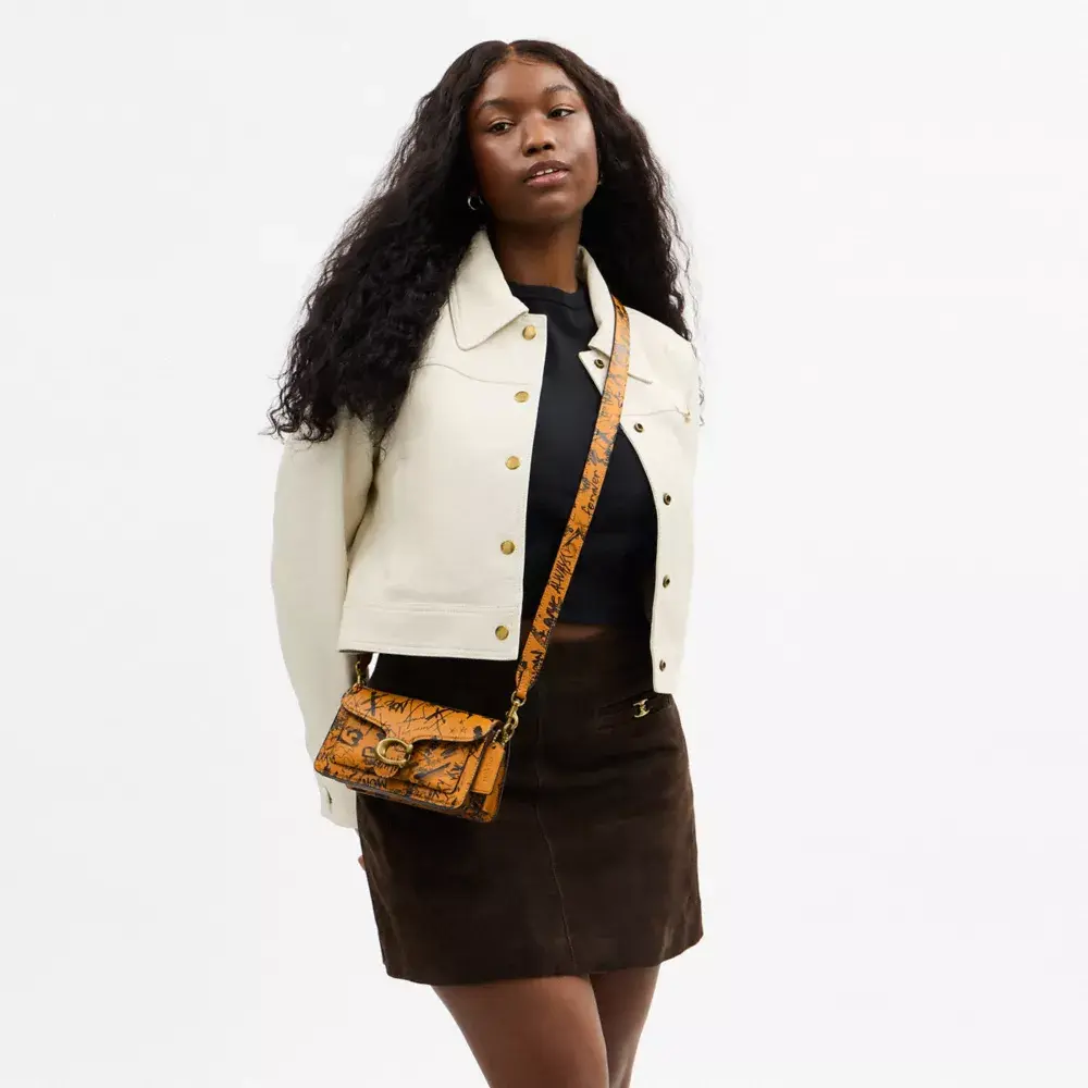 Наша структурированная сумка через плечо Tabby, современная интерпретация дизайна Coach 1970-х годов, изготовлена из мягкой дубленой кожи с ярким принтом в виде граффити, вдохновлённым энергией Нью-Йорка. Модель mini 20 меньше модели 26, но оснащена двумя съёмными ремнями для ношения в руке, на плече или через плечо. Сумка дополнена нашей фирменной фурнитурой, придающей ей уникальный вид.