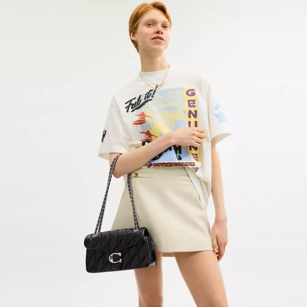 Структурированная сумка через плечо Tabby из стеганой, невероятно мягкой кожи наппа — это современная интерпретация дизайна Coach 1970-х годов. Компактная модель 26-го размера дополнена нашей фирменной фурнитурой, придающей ей культовый вид, и длинным кожаным ремешком-цепочкой, который позволяет носить сумку через плечо или сложить её вдвое, чтобы она смотрелась более короткой и элегантной.