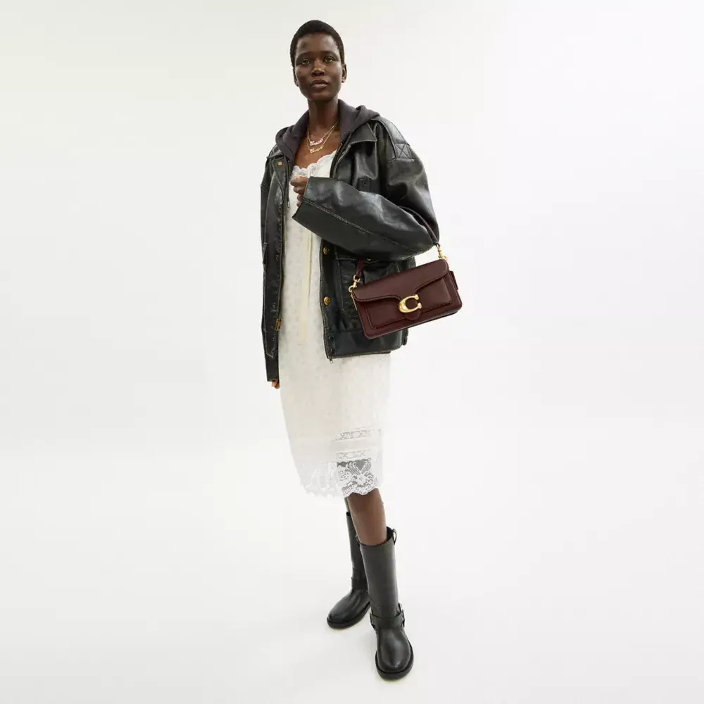 Наша структурированная сумка через плечо Tabby, представляющая собой современную интерпретацию дизайна Coach 70-х годов, выполнена из полированной шагреневой кожи. Компактная модель 26, дополненная фирменной фурнитурой, оснащена двумя съёмными ремнями для ношения в руке, на плече или через плечо.